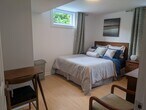 English follow 31/2 chaleureux situé dans un bungalow dans un quartier prisé et tranquille tout en étant à distance marche d'épiceries, pharmacies, restaurants, commerces et autobus. 10 minutes en voiture d'Ottawa. Nouvellement complètement rénové. Entièrement meublé style mid-century modern (voir photos). Vaisselle (pour cuisson et services), litterie et lingerie fournie. 5 électroménagers inclus: frigidaire, four, micro-ondes, lave-vaisselle, laveuse-sécheuse. Services inclus : chauffage, climatisation internet. Extra: Stationnement. Accès à la cour avec terrasse, barbecue et piscine. Animaux et fumée de tabac, de cannabis ou autre non permis. Certains travaux sont à compléter. Photos de la salle de bain à venir. Bain complet avec douchette. Vanité et pharmacie avec beaucoup de rangement. Cozy 1 bedroom apartment in a bungalow located in a quiet, sought-after neighborhood within walking distance of grocery stores, pharmacies, restaurants, shops and buses. 10-minute drive to Ottawa. Newly completely renovated. Fully furnished in mid-century modern style (see photos). Dishes (pots, pans, ustensiles and tableware), bedding and linen provided. 5 appliances included: fridge, oven, microwave, dishwasher, washer-dryer. Services included: heating, air conditioning and Internet. Extra: Parking. Access to courtyard with terrace, barbecue and swimming pool. Pets and smoking of tobacco, cannabis or other products not allowed. Some work to be completed. Photos of bathroom to come. Full bath with shower. Vanity and medicine cabinet with plenty of storage.