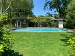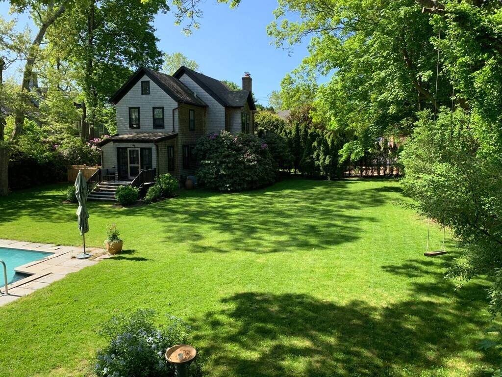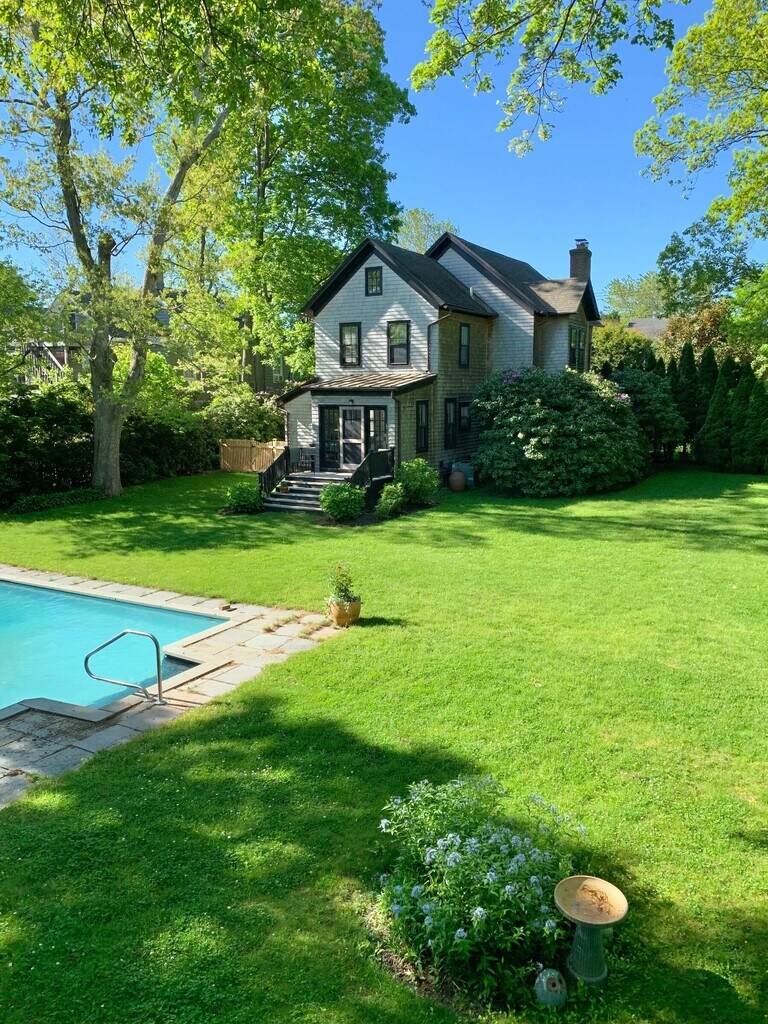 Updated Historic in the Village and close proximity to Bay Beaches. Consider this your home away from home in Sag Harbor Village, a relaxing respite and perfect for entertaining. You'll find comfort and sophistication in this historic, contemporary home. Filled with natural light, you're nestled away from the street and situated in nature, so even though you're in town it's easy to forget with the flora and fauna surrounding you. With 4 bedrooms, 2 full baths, 2 half baths, and a private outdoor shower, you'll also find an impeccably maintained rear lawn with heated salt-water pool, hammock and a spacious outdoor dining area on the back deck connected to the kitchen, perfect for taking in the morning. The main floor features a freshly remodeled state-of-the-art gourmet kitchen with marble counters, a center island with stools, and a cozy breakfast nook that seats up to 6. Alongside is the dining room that seats up to 10, laundry, and the living room with a gorgeous fireplace, flat screen TV, bay window seat, and built in bookcases filled with a photographic library framing a Steinway piano. The living room opens onto an enclosed front sitting porch with ceiling fans. A half bath with pocket door and a light-filled playroom complete the first floor. The second floor includes a primary suite with queen bed, sitting area and ensuite bath with glass-enclosed shower. Connected but still private is a bedroom with twin beds (can be exchanged for full and twin or crib as needed). A third, sunny bedroom has a full size bed and antique desk. A separate full bath accessible from the hallway rounds out the second floor. The third floor features a huge room with 2 twin beds (can be pushed together to make a king), a Mid-century modern daybed, a desk and a private half bath. A *rare* find in Sag Harbor Village - Enjoy your home away from home as you relax by the pool and garden, entertain and dine al fresco (the outdoor table sits 14 comfortably!) surrounded by twinkling lights, wisteria vine, cedar, and slate. The property is situated in a perfect location-a few blocks from Havens Beach and close to cinema and shopping on Main Street. Rental Terms: August - Labor Day: $75,000 Two Weeks: $35,000 June: $45,000 July: $60,000 August: $70,000