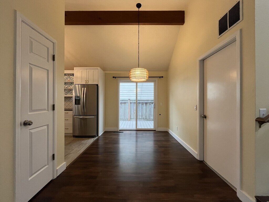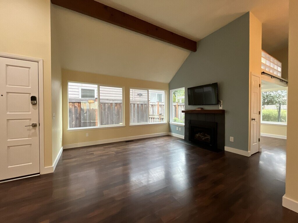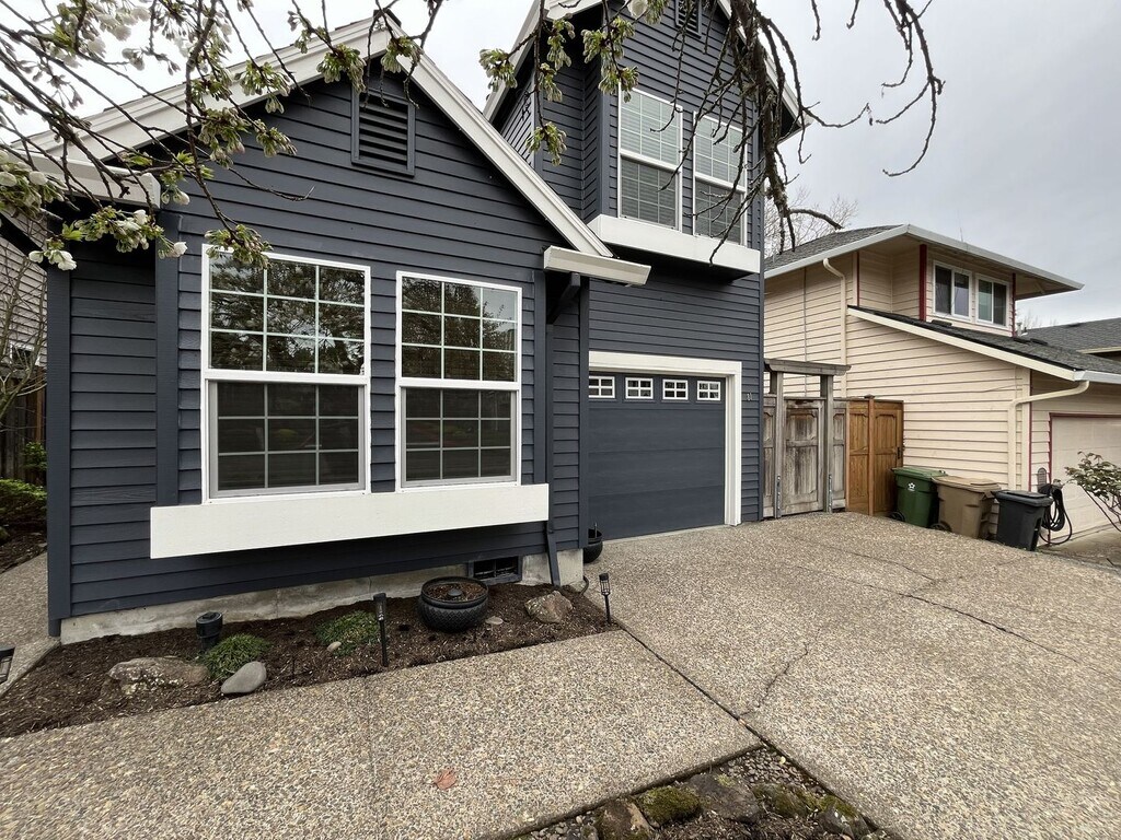 This beautiful 2-bedroom, 2-bath home in Lake Oswego with 1,270 square feet offers exceptional curb appeal, thoughtfully designed living spaces, and a stunning backyard retreat perfect for entertaining. The exterior immediately stands out with mature landscaping, including a cherry tree, Japanese maple, manicured shrubs, and a charming rock wall garden. The home also features an attached one-car garage and a gated entry to the backyard, adding both convenience and privacy. Step inside to a bright and inviting living room featuring vaulted ceilings, two large windows, creating a warm and open atmosphere filled with natural light. Adjacent to the living room is the formal dining area, complete with a hanging pendant light and sliding glass doors that lead directly to the outdoor patio, making indoor-outdoor living seamless. The spacious kitchen is both stylish and functional, offering sleek gray countertops, white cabinetry, and an intricately patterned white tile backsplash. Appliances include a French-door refrigerator with pull-out freezer, electric range and oven, stainless steel dishwasher, and a flush-mounted sink. The kitchen also features bar seating and a bright breakfast nook with corner windows, providing a perfect spot to enjoy morning coffee while overlooking the backyard. On the main level, you’ll find one bedroom and a full bathroom. The bedroom features a bold accent wall, a large window, built-in closet storage, and a modern light fixture. The nearby bathroom includes a single vanity and a tub/shower combination with tan subway tile surround. Upstairs, the primary suite offers a private and spacious retreat, filled with natural light from multiple windows. This room includes a mini-split system for added comfort and an expansive walk-in closet with dual sections, built-in storage, and dedicated lighting—ideal for organization. A full bathroom across the hall includes a single vanity, additional linen storage, and a tub/shower combo with coordinating tile finishes. The fully fenced backyard is a true highlight, designed as a private outdoor oasis. A wraparound deck with a pergola provides a perfect setting for relaxing or entertaining, while an additional seating area with a second pergola, artificial turf, rock pathways, and a tiled patio creates multiple inviting spaces to enjoy the outdoors. With its vaulted ceilings, updated kitchen, flexible layout, and beautifully designed outdoor living areas, this Lake Oswego home offers a unique blend of comfort, style, and functionality. Call or Text Our Leasing Agent to schedule a showing! English Speaking Spanish Speaking YouTube Link: Coming Soon Visit our website to apply and view other homes we have available! Do you need property management services? Maximize your income and cut your costs!