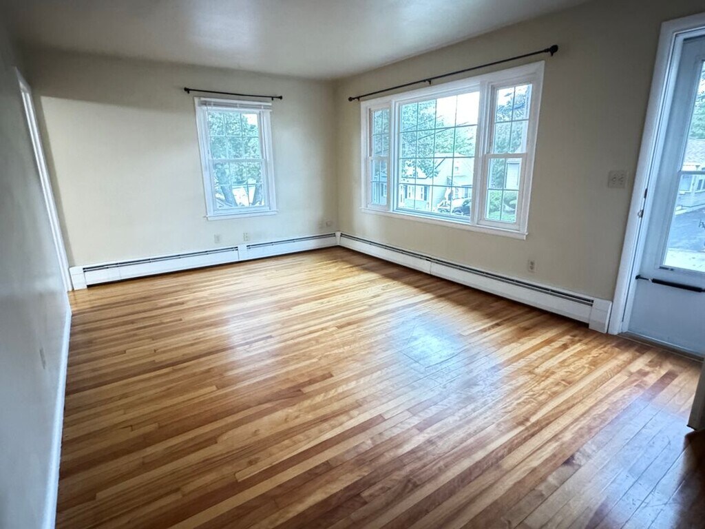 Well maintained three bedroom, one full bath ranch, lovely eat-in kitchen and large living room with hardwood floors. Off streetparking, large backyard. Walking distances to parks and shopping. Great commuter location. NO PETS, NO SMOkING. Application and back groundcheck fee paid by renter.