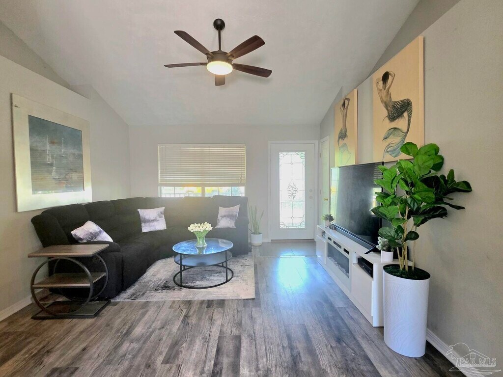 Well-maintained 3 bedroom,2 bath home just minutes from the NAS Pensacola main gate,conveniently located off Gulf Beach Hwy and Navy Blvd - ideal for those needing quick access to NAS Pensacola. This home features an easy,functional layout with durable flooring throughout the main living areas and a bright,open feel. The kitchen offers plenty of cabinet and counter space and flows right into the living area for simple,everyday living. All three bedrooms are nicely sized,including a private primary suite with its own bath. Out back,you’ll find a large deck—perfect for relaxing or entertaining—along with a fully fenced backyard. Quick access to downtown Pensacola,shopping,dining,and both Pensacola Beach and Perdido Key,with parks,boat launches,and trails nearby. Pets allowed with owner approval and completed pet screening. Apply online; $75 App fee per adult,half off for active-duty military. Subject to credit check,background check,employment verification,and rental verification. CERTIFIED Funds required for move in!