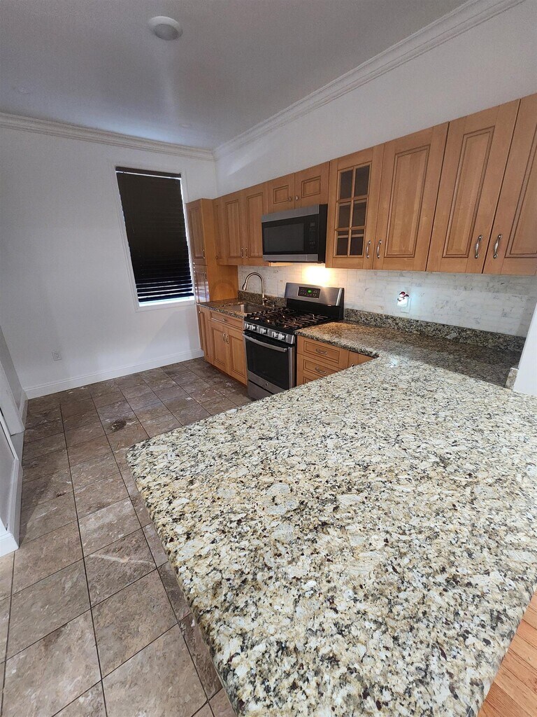 Beautifully updated kitchen, spacious to an open Livingroom area. The 3-bedroom also with its own closets. Apartment is newly renovated entirely, plumbing and electric. New floors and walls. Plenty of light throughout. laundry on the premises- plenty of washers n dryers in the basement. Perfect location for NYC commuters and/or other NJ areas. Come see it before is too l
