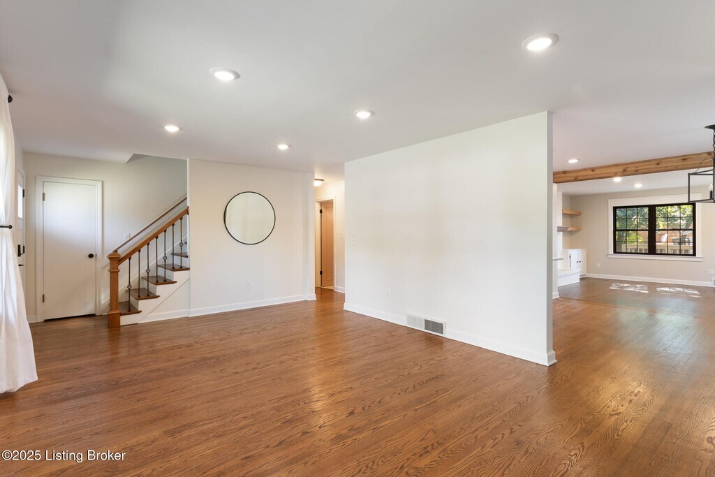 Available now!! This beautiful 4-bed,2-bath home ideally located in Woodlawn Park is just a 5-minute drive to the heart of St. Matthews and only 0.3 miles away from the Watterson Expressway making it a breeze to get around town. This 1950s home retains its charm with original hardwood floors and original downstairs bathroom while also having an updated kitchen and bathroom upstairs to provide modern amenities. Complete with a 6-burner Monogram stove and a Monogram refrigerator,the owners spared no expense when renovating this kitchen. With the additional cabinets underneath the island and the storage compartments in the built-in bench,this eat-in kitchen is well equipped with lots of storage. The open concept layout is perfect for entertaining while the additional living room provides a separate space to enjoy some solitude. The basement is partially finished with loads of storage on the unfinished side. The brand-new deck built in August of 2025 is the perfect space for an outdoor oasis. Laundry in unit,washer and dryer remain. Option for maximum of 2 dogs based on weight,no cats. No smoking. New roof,new HVAC,new mini-split,and new deck.