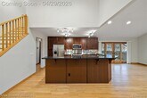 Incredible open floor plan includes remodeled kitchen, living and dining areas with hardwood floors, architectural ceilings and skylights. Kitchen with stainless steel appliances and backsplash, black pearl granite and solid cherry cabinets. Four bedrooms, 2 full bathrooms, first floor laundry. Large open basement. Doorwall from dining area leads to large deck and backyard with privacy fence. Brick/stained exterior on large corner lot. Two minute walk to downtown. New Furnace and A/C - '24.