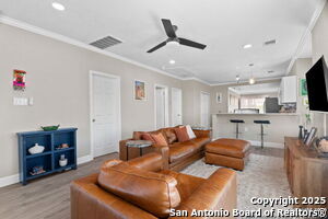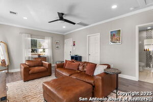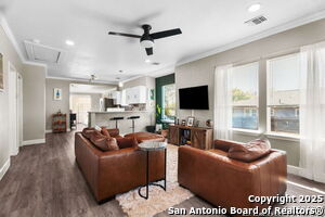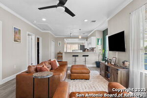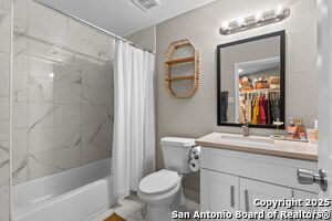 Close to Riverwalk and the Alamodome. This charming home has a lot to offer and is a must see! The exterior and interior has an added modern touch. This open floorplan is nice for entertaining and equipped with stainless steel appliances. The main bathroom as a walk-in shower with a glass door. Enjoy the peaceful view of the city lights and Alamodome from the living room.
