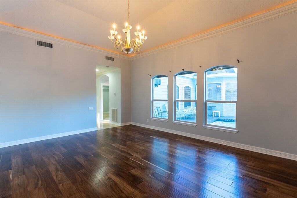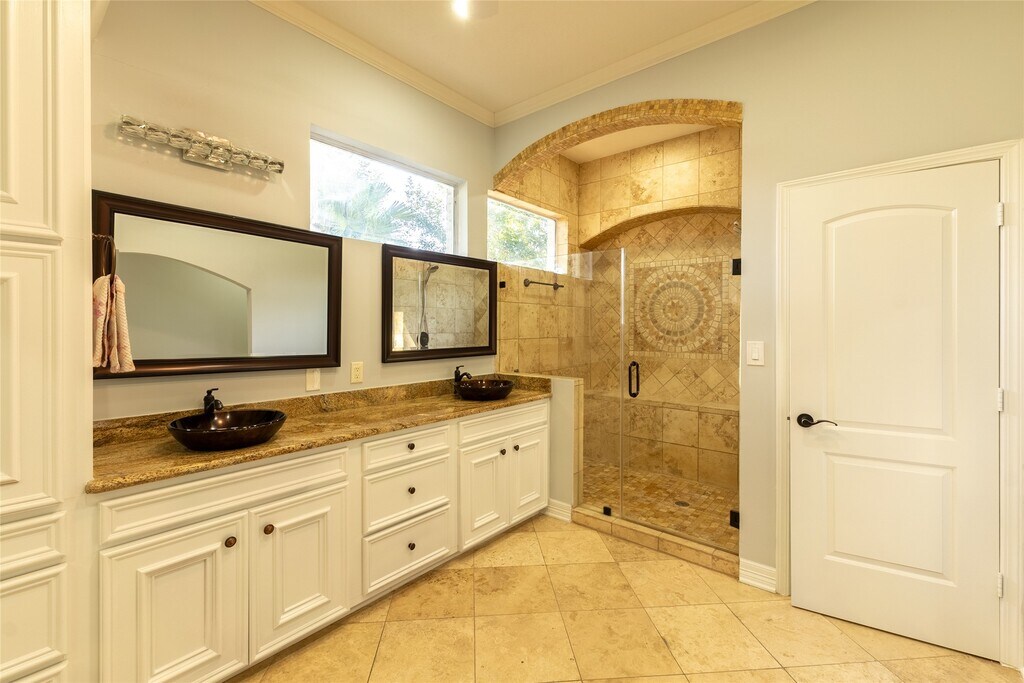Contemporary/modern style exterior and interior with new paint,new windows,new downstairs A/C,recent foundation leveling,and remodeled kitchen. The primary suite overlooks the backyard lap pool,and has crystal chandelier and elegant cove lighting. The primary bath is stunning with massive shower featuring mosaic wall,raised bowls on granite vanity,and huge custom closet. The wine grotto off the formal living room allows for great bottle and glassware storage. Custom faux painted feature wall is the perfect place to display art collections,and the curved inlay banister with custom rails leads to the upstairs game room and 3 large bedrooms and 2 full baths. You really need to see the detail to fully appreciate the custom touches in this home. Drone footage available upon emailed request. This is a unique showcase home ! Pool and yard care included in monthly rent. MLS# 76933688