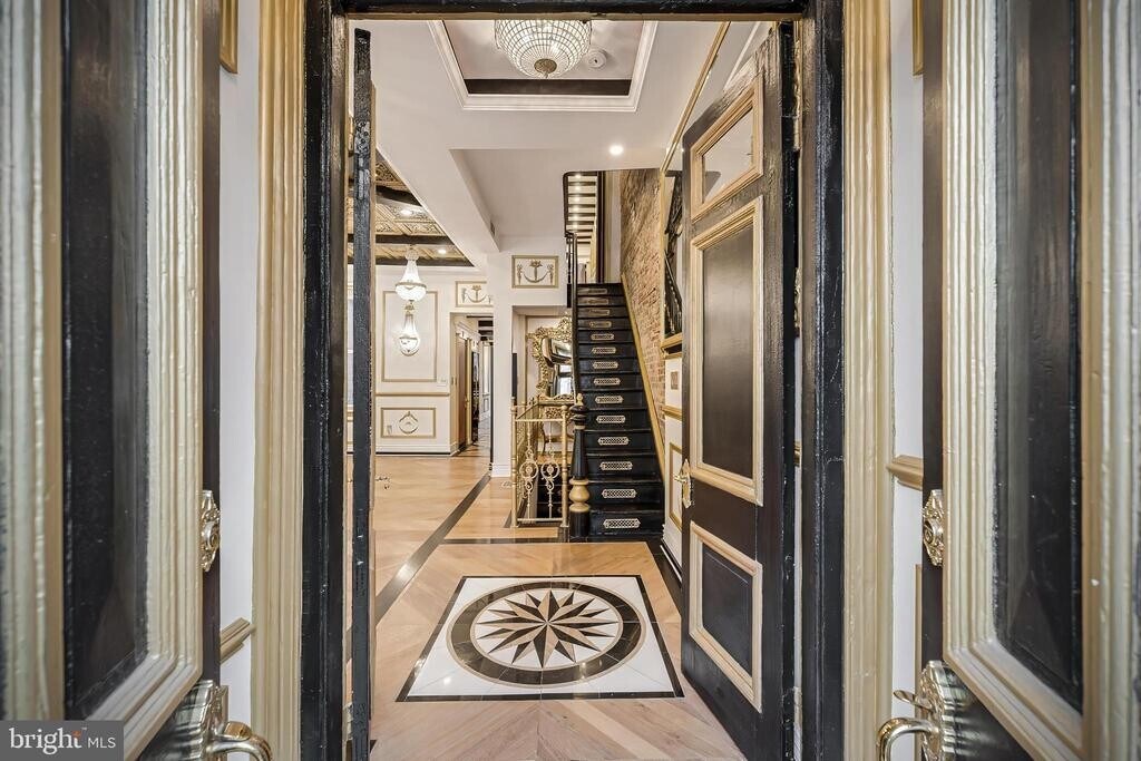 Introducing The Prince, often referred to as the Versailles of Old Town, a once-in-a-generation opportunity to own one of the most architecturally distinctive and thoughtfully crafted residences ever offered in Historic Old Town Alexandria. Behind a classic Federal-style brick façade lies a fully restored and reimagined historic townhouse where 1830s Colonial heritage meets refined European craftsmanship and modern smart-home living. Years in the making, The Prince was designed with exceptional detail, provenance, and presence. Spanning six bedrooms and four-and-a-half bathrooms across four finished interior levels, the home is crowned by a fifth-level rooftop deck offering 360-degree views over Old Town with partial views of the Potomac. This rooftop is the only known fully approved and constructed 360-degree rooftop deck on a historic residence within the Old and Historic District of Old Town Alexandria, making it truly irreplaceable. Throughout the residence, original architectural elements are preserved and elevated through imported European materials, curated Early American and European antiques and artifacts (many of which convey), and extraordinary attention to detail. Imported marble flooring with gold inlays, bespoke millwork, designer fixtures, and globally sourced finishes are layered seamlessly over original brick and wood, creating a home that feels both grand and warmly livable. The original staircase has been transformed into a striking architectural centerpiece, encased in glass with custom lighting. A rare manual dumbwaiter discovered during restoration has been thoughtfully mechanized and incorporated as a functional historic feature, honoring the home’s past while supporting modern living. Designed for both elegant entertaining and everyday comfort, the home features eight fireplaces, including one in every bedroom. The chef’s kitchen is anchored by a La Cornue range, custom appliances, bespoke cabinetry, and Belvedere quartzite countertops. A concealed motorized television integrated into the main island preserves clean sightlines while allowing the space to transition effortlessly from daily living to hosting at scale. Custom day to night lighting throughout the home enhances the experience from morning elegance to evening ambiance, supported by integrated smart-home technology. The lower level offers a private entrance and functions as a flexible suite with an en-suite bedroom, kitchenette, living area, and washer/dryer, ideal for guests, multigenerational living, au pair accommodations, a private retreat, or potential rental use. Outdoor spaces are equally refined, featuring a serene garden courtyard with six fountains, a star-lit archway, ambient lighting, and multiple outdoor entertaining areas. Above it all, the rooftop deck serves as a private sky lounge with seating, dining space, outdoor theater, putting green, and panoramic views across the Old Town skyline toward Washington, DC, Maryland, and the Potomac River. In a city where parking is an exceptional premium, The Prince offers rare off-street parking, including a private gated garage capable of accommodating up to four compact vehicles, along with resident guest-only alley accessible parking. The property also features the largest carport door ever approved and installed within the Old and Historic District. Located just one block from King Street, Old Town’s main thoroughfare for acclaimed restaurants, boutiques, galleries, and cultural landmarks, the setting could not be more central or walkable. Combined with immediate access to Reagan National Airport, Washington, DC, and Maryland, The Prince offers a lifestyle that is as effortless as it is extraordinary.