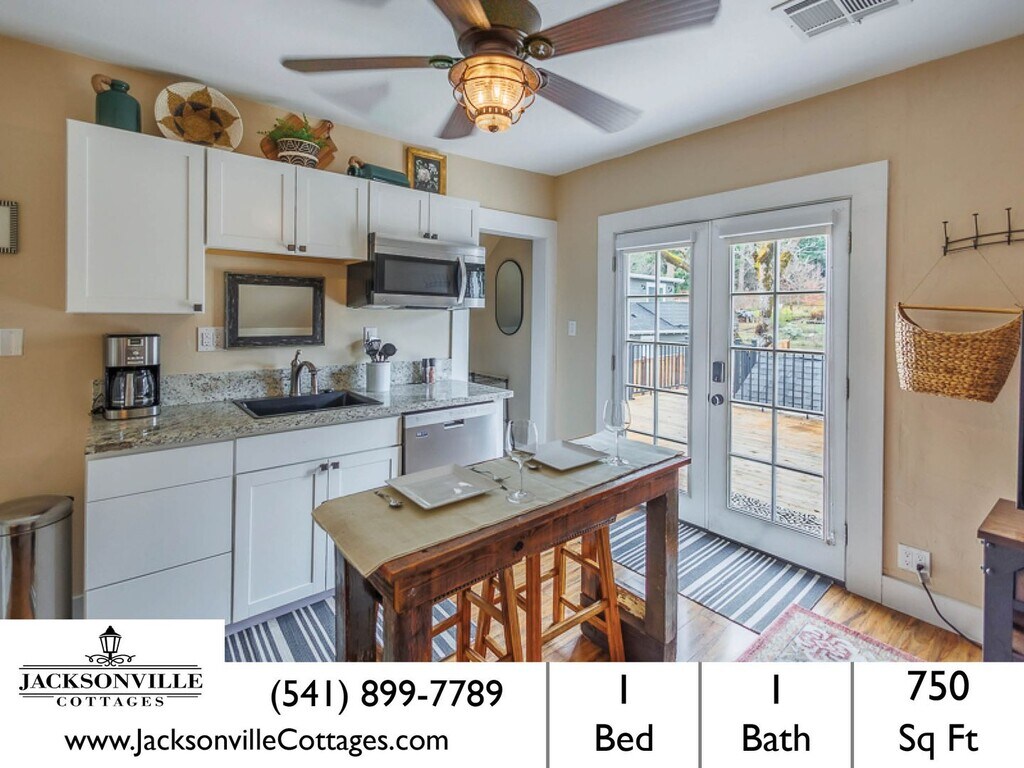 Welcome to The Loft: Fully Furnished Jacksonville Suite! This charming one-bedroom, one-bathroom house is located in the beautiful town of Jacksonville, OR. As you step inside, you'll be greeted by a grand deck offering breathtaking views of the surrounding area. The spacious bedroom features a comfortable king-size bed, perfect for a restful night's sleep. The bathroom boasts both a bath tub and shower, providing you with options for relaxation. The convenience of a washer and dryer included in the house ensures that laundry day is a breeze. The kitchen is equipped with modern appliances, including a dishwasher, built-in microwave, and a refrigerator. The kitchen island with bar seating is ideal for enjoying a quick meal or entertaining guests. Storage space is available to keep your belongings organized. The location of this house is unbeatable, as it is close to downtown Jacksonville, where you can explore the local shops, restaurants, and entertainment options. If you enjoy outdoor activities, you'll love the proximity to hiking trails, allowing you to immerse yourself in nature. Don't miss out on this incredible opportunity to live in The Loft: Furnished Jacksonville Suite, with all the amenities you need are at your fingertips. APPLIANCES include; Dishwasher, Microwave, Refrigerator, A/C, Washer/Dryer. APPLY at or CALL us at to reserve. PETS One small dog or cat is allowed with an additional $100 cleaning fee (size and breed restrictions may apply). SMOKING is not allowed in or around this property. A $350 fee will be charged if there is smoking in the home. Costs: $300 Utility fee covers all utilities, plus streaming TV subscription, Wi-Fi, trash and landscaping. In addition, there is a $240 non refundable cleaning fee, a refundable security deposit equal to one month of rent, and a 3.5% monthly admin fee. Renters insurance required. TENANT PAID UTILITIES None outside of the utility fee mentioned above unless unless they are over reasonable amount (this amount is stated in the Rental Agreement)