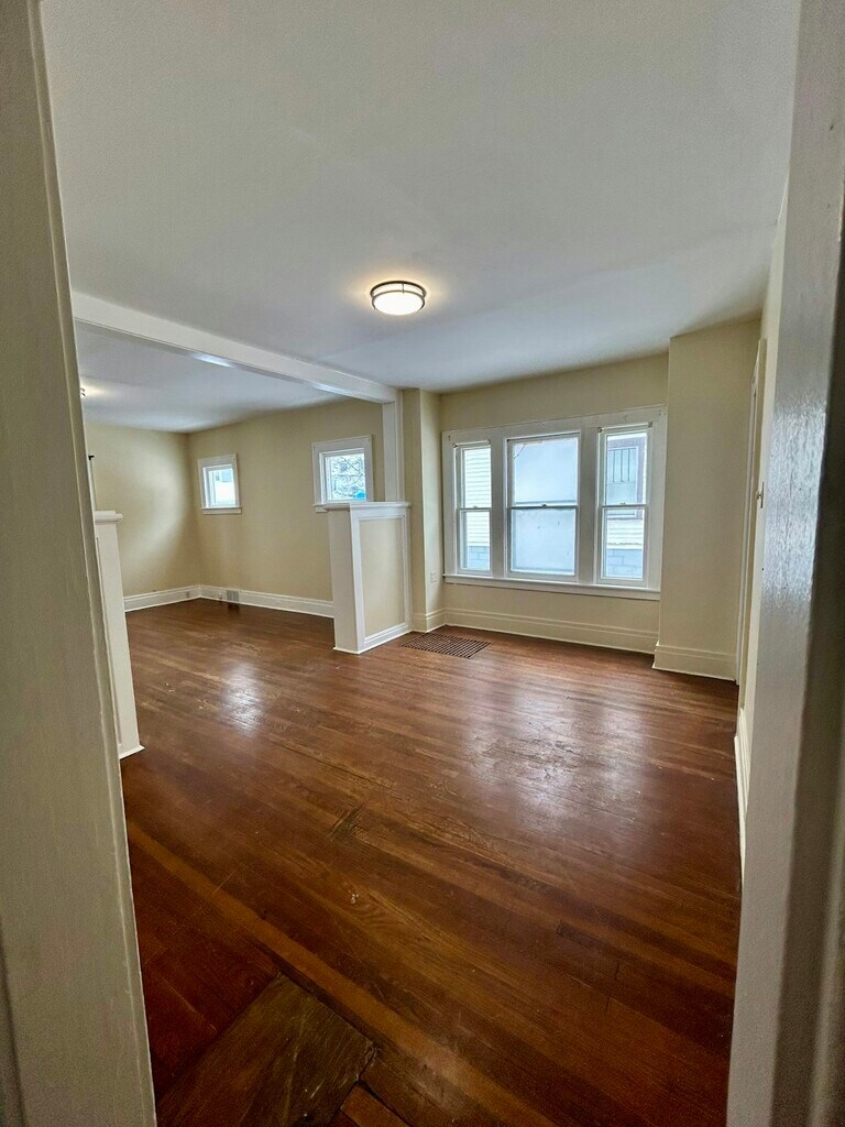 Bright and spacious 3-bedroom, 1-bath ground floor apartment located in the desirable University area. This freshly updated unit features beautiful hardwood floors, a brand new kitchen and bathroom, and fresh paint throughout. Enjoy a welcoming 3-season front porch, off-street parking, and a small yard for your use. Laundry hookups and storage are available in the basement for your convenience. Conveniently located near Syracuse University, hospitals, shopping, and dining. Tenant is responsible for all utilities. Landlord handles lawn card and driveway snow removal.