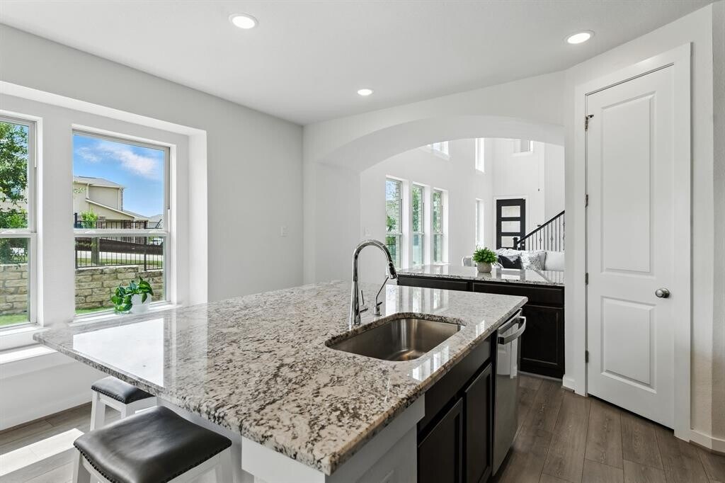 Welcome to 8100 Copper Prairie—an exceptional 4-bedroom, 3-bath home for lease located in the highly desirable Tessera on Lake Travis community in Lago Vista. Built in 2022, this 2,328 sq ft home offers modern comfort, thoughtful design, and access to outstanding neighborhood amenities. Inside, you’ll find a bright, open-concept layout with a chef-style kitchen featuring a large island, gas range, stainless steel appliances, and plenty of space for cooking and entertaining. The kitchen flows seamlessly into the living and dining areas, creating the perfect setting for everyday living or hosting guests. The home offers a spacious primary suite, a secondary bedroom with a private ensuite bath, plus three additional bedrooms—ideal for families, guests, or a home office. With three full bathrooms, this floor plan provides flexibility and convenience for any lifestyle. Enjoy Hill Country and Lake Travis views from the front yard, and unwind in the peaceful backyard that backs to a greenbelt, offering added privacy and space. Located in the award-winning Tessera on Lake Travis community, residents enjoy access to resort-style amenities including a lakeside pool, private boat launch, fitness center, hiking trails, parks, and more. Zoned to highly rated Lago Vista ISD. This well-maintained home is move-in ready and offers the perfect blend of comfort, convenience, and Hill Country living.