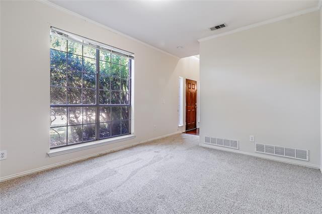 The house sits on a corner lot in the well established community of Preston Oaks. Close to major Highways, schools, and shopping. Kitchen with stainless steel appliances and center island is open to the living room which features wood floors, fireplace, and wall of windows to the back yard. The yard is fenced (new fence in 2019) with a covered patio, so it's great for entertaining - rain or shine. House includes washer, dryer and refrigerator.