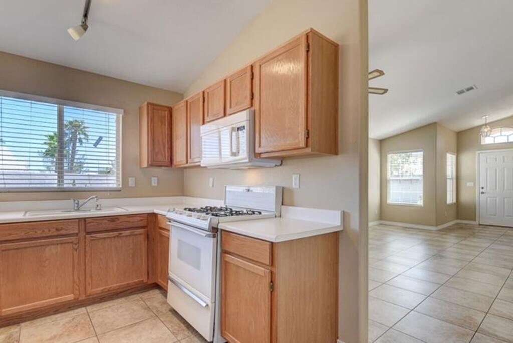 Beautifully maintained single-story home near Summerlin offering the perfect blend of comfort and functionality! This 3-bedroom, 2-bath property features custom tan paint and brand-new carpet in all bedrooms, with tile flooring throughout the main living areas, including the living room, family room, kitchen, and hallway. The well-appointed kitchen includes a breakfast bar, pantry, oak cabinetry, and durable laminate countertops. All appliances are included—refrigerator, microwave, stove, washer, and dryer—for added convenience. Situated on a desirable corner lot, the home boasts a spacious backyard with low-maintenance desert landscaping, a covered patio, and plenty of room to relax or entertain. Conveniently located near shopping, dining, parks, and easy freeway access. Verify all fees with your agent before applying.