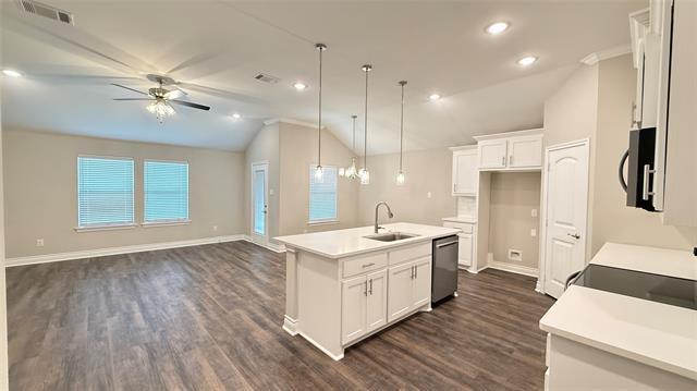 William YanAbsolutely gorgeous brand new house build by Scott Ellis Homes! Tile flooring through out this brand new 4 bedrooms, 2 full baths and 2 car garage house . Home includes open 10 feet ceiling living space, granite counter top, large kitchen island, under cabinet lighting, white cabinets, separate shower and tub, dual sinks in master bedroom, ceiling fan in each room, crown molding, blinds, frameless shower, covered back patio, stained fence, sprinklers, landscaping, gutters and etc. Neighborhood is 5 minutes from L3-Harris, I-30, Local Restaurants and Shopping.
