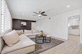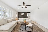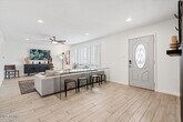 Fairway is a beautifully updated four-bedroom,two-bathroom residence located just minutes from Old Town Scottsdale,Scottsdale Stadium,and the Entertainment District. This home offers the perfect blend of comfort and convenience,with a private backyard retreat,spacious living areas,and proximity to some of the city's top attractions. Inside,the open-concept living room is bright and inviting,with cozy furnishings,a Smart TV,and additional bar-height seating that flows into the dining and kitchen areas. The fully equipped kitchen includes stainless steel appliances,abundant counter space,and direct access to the backyard,making it an ideal setting for both everyday meals and entertaining. The dining area provides room for six,creating a welcoming space for family gatherings Fairway is a beautifully updated four-bedroom,two-bathroom residence located just minutes from Old Town Scottsdale,Scottsdale Stadium,and the Entertainment District. This home offers the perfect blend of comfort and convenience,with a private backyard retreat,spacious living areas,and proximity to some of the city's top attractions. Inside,the open-concept living room is bright and inviting,with cozy furnishings,a Smart TV,and additional bar-height seating that flows into the dining and kitchen areas. The fully equipped kitchen includes stainless steel appliances,abundant counter space,and direct access to the backyard,making it an ideal setting for both everyday meals and entertaining. The dining area provides room for six,creating a welcoming space for family gatherings. The primary bedroom features a queen bed,walk-in closet,and ensuite bathroom with a walk-in shower. Two additional bedrooms also offer queen beds,one with its own Smart TV,while the fourth bedroom provides two twin beds and a chaise lounge. A second full bathroom with a shower and tub combination serves the additional bedrooms. The backyard is designed for relaxation and fun,featuring a sparkling pool,mini golf,and a spacious patio with seating for outdoor dining. Evenings can be spent around the private fire pit or simply enjoying the Arizona sunshine from the comfort of your own yard. Additional conveniences include a two-car garage,driveway parking,in-home laundry,and ceiling fans throughout. With its combination of functional layout,comfortable design,and unbeatable location,Fairway is a rare long-term rental opportunity in the heart of Scottsdale.