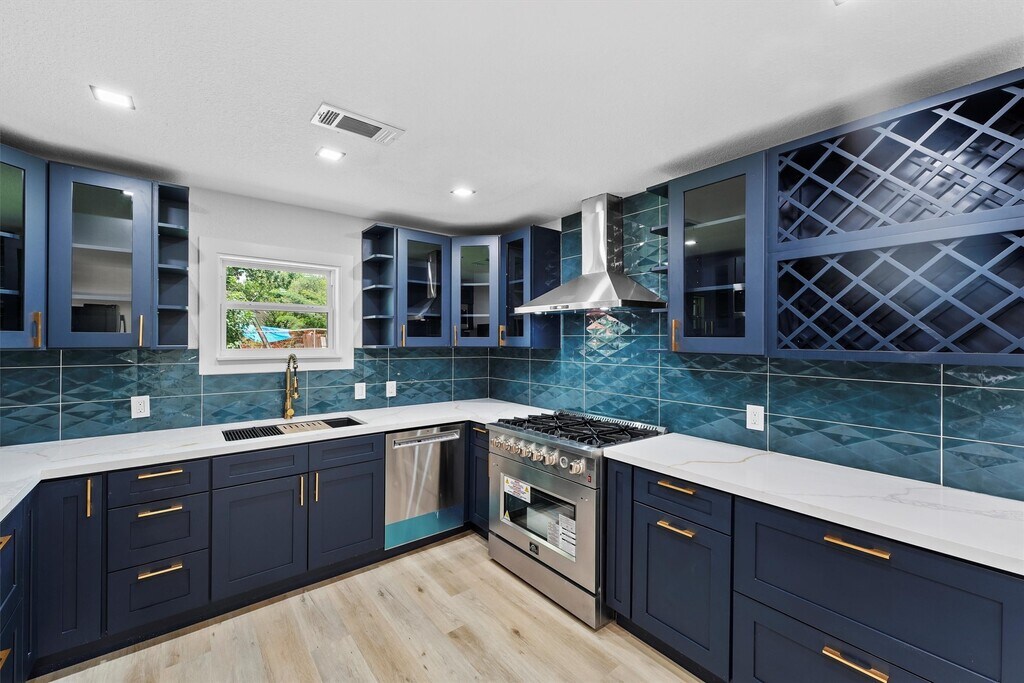 Exquisitely renovated 4,000 sq ft residence situated on a sprawling 20,000 sq ft lot. This home showcases 2 luxurious living areas,a sophisticated wet bar,and a stunning quartz kitchen adorned with striking blue cabinets. Be captivated by the grand primary suite,appreciative of the 3-car garage,dual driveways,expansive covered patio,and the vast backyard retreat,offering an inviting space for both entertaining and unwinding in style. MLS# 8295112