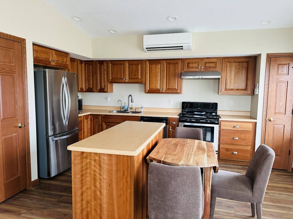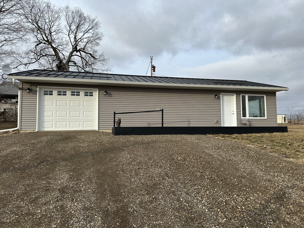 This is newly built 1 bedroom single family home on a working farm. Enter through the garage where you will be able to park your vehicle and have storage to the front. Once inside you will find the hallway. to start there is a half bath with stackable washer and dryer and the mechanicals. You will then find the 1 bedroom with a walk in closet. back in the hallway is the full bathroom in which has a walk in tub. Further down the hallway you will find an area that could be used for your office. Then you will be in the main living area in which has a moveable island which can also be removed to make the space much more open. The living area is attached with a door to the front porch in which you can sit out on and watch the cows and all things farm. The tv's at the property stay all other items will be removed. This property does include all utilities in the rent. Property is owned by an Illinois Licensed Real Estate Agent. This is a single family home with only 1 bedroom on a functioning family farm on a gravel road. That means there are cows, other animals, bugs, and all other things that come with a farm. There will be people on property all the time with family living next door. Please consider this when determining if this is the right property for you. Property is owned by an Illinois Licensed Real Estate Agent.