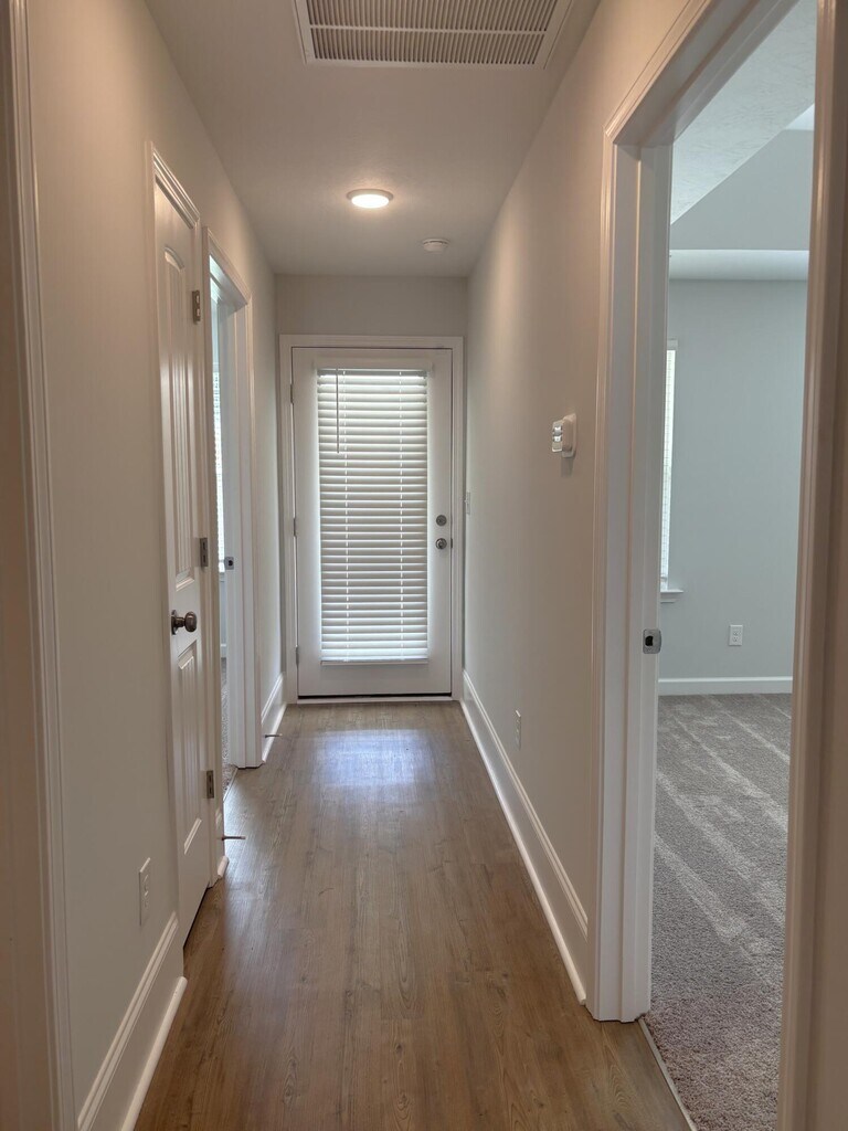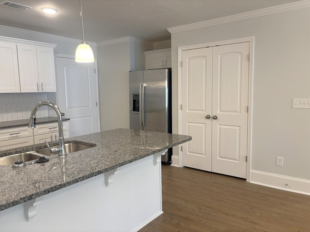 Available for immediate occupancy! New construction 2 bedroom,2 bath townhome in Clearwater Preserve subdivision. Covered front stoop opens to open-concept floor plan with LVP flooring throughout main living area,kitchen and hallway. Living room has trey ceiling and ceiling fan; adjacent dining area with decorative lighting separates the living room and kitchen area. Kitchen with granite counters,stainless appliances,tile backsplash,breakfast bar and pantry. Door separates the living kitchen space from the hallway leading to the bedrooms/bathrooms and backyard. Primary bedroom has trey ceiling and fan. En suite bath has double sink vanity with stone counter,large walk in shower,linen closet and large walk-in closet with shoe rack. 2nd bedroom with double door closet. Hall bath with single sink vanity and tub/shower combo. Hallway off dining area leads to mud area with shoe bench and coat pegs,security system,linen closet and laundry room with cupboard and hanging shelf.