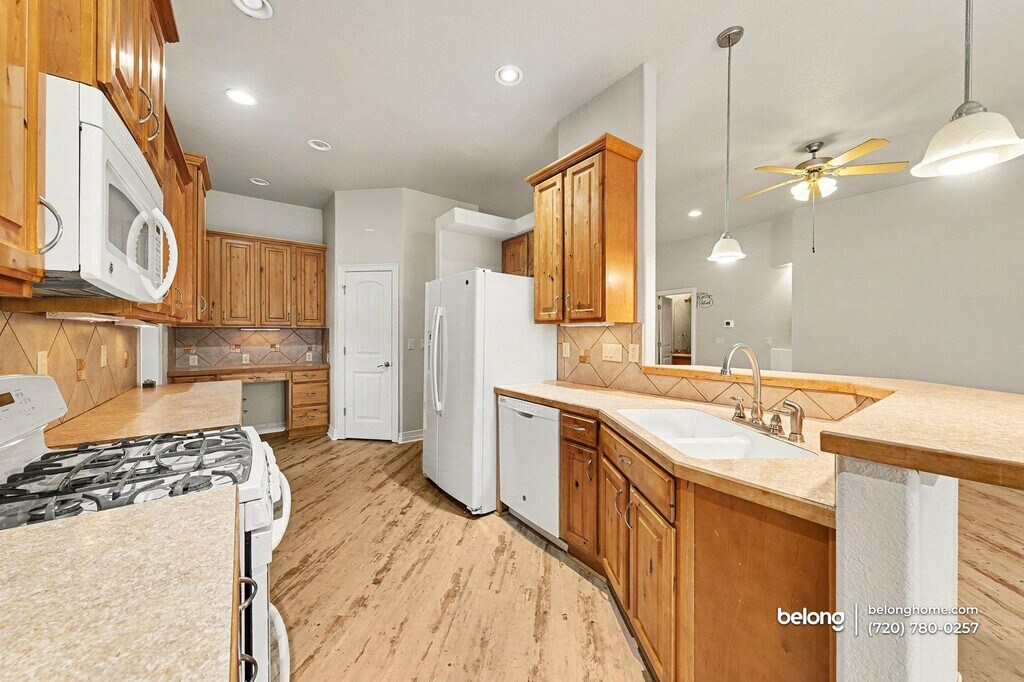 This spacious 3-bedroom, 2-bath home delivers room to spread out with an impressive 3,102 square feet of living space, all thoughtfully arranged on a single level. With only two steps to enter and exit, everyday movement feels easy and comfortable, while bright shared areas set an upbeat tone for daily life and casual gatherings. Living, dining, and kitchen spaces connect naturally, giving you plenty of flexibility for hosting, relaxing, or enjoying quiet evenings at home. The sunroom adds a bonus space where natural light pours in, creating a lovely spot for reading, hobbies, or surrounding yourself with greenery. Landscaping in the yard includes grapevines, raspberry bushes, a peach tree, a maple tree, assorted pine trees, and a tranquil water feature that adds a calming sound to the yard. An automatic sprinkler system helps keep everything looking its best. The 3-car garage includes a workbench, giving you space for projects, storage, or weekend tinkering. Tucked into a quiet, family-friendly cul-de-sac with minimal traffic, this location is known for great schools and a welcoming neighborhood feel. Nearby parks, local shopping, grocery stores, and everyday conveniences are all within easy reach, making this a place where comfort, space, and community come together beautifully. *Fireplace is for decorative use only and cannot be used without consent from Belong. *Our homes come as-is with all essentials in working order. Want upgrades? Request it through the Belong app, and our trusted pros will take care of the rest!
