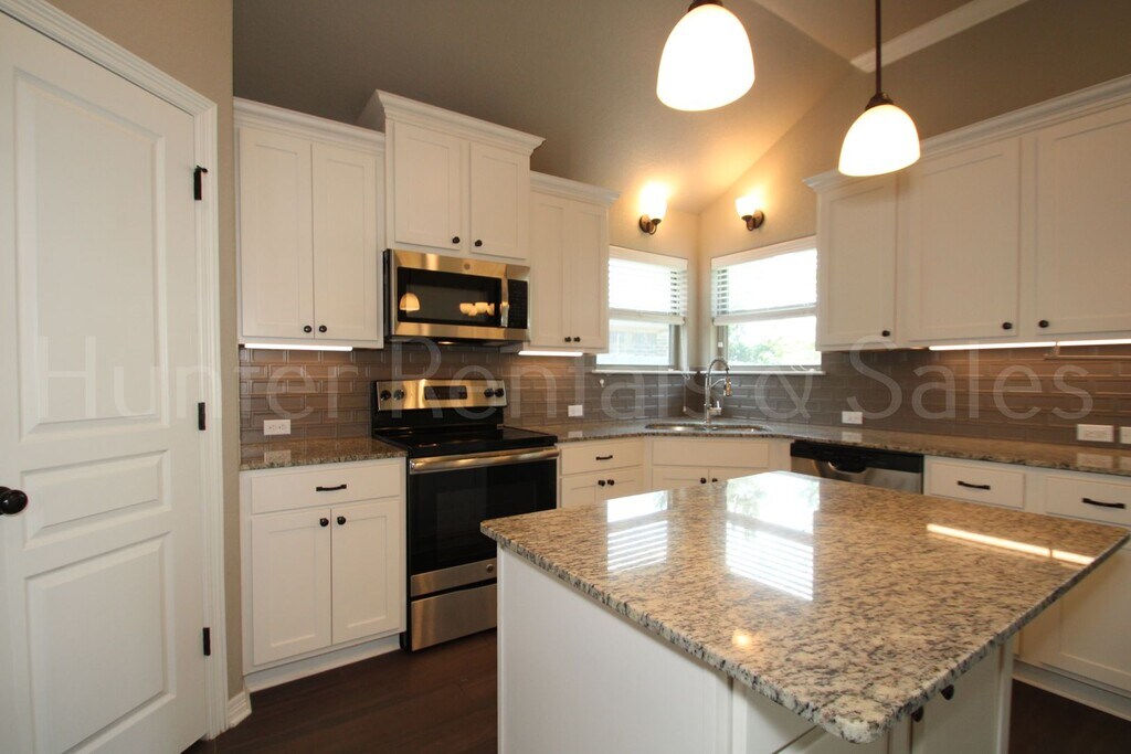 Welcome to this inviting 4-bedroom, 2-bath home tucked away in a quiet cul-de-sac within the desirable Carriage House community. Featuring an open floor plan, wood-burning fireplace, and warm wood flooring throughout the main living areas, this home offers both comfort and style. The spacious kitchen is a true centerpiece, complete with granite countertops, custom white cabinetry, stainless steel appliances, a corner pantry, and an oversized breakfast area perfect for gatherings. Designed with a split floor plan, the private primary suite boasts a spa-like bathroom with a garden soaking tub, separate shower, dual vanities, and two oversized walk-in closets. On the opposite side, three secondary bedrooms share a full hall bath, offering space and flexibility for all. Step outside to enjoy a covered back porch with ceiling fan, overlooking the fully landscaped yard with a sprinkler system. As a bonus, residents of Carriage House enjoy access to the neighborhood swimming pool—perfect for hot Texas summers! PRICE AND AVAILABILITY ARE SUBJECT TO CHANGE WITHOUT NOTICE. Application Information: * Offered by Hunter Rentals & Sales Visit our website, for an online application and to view complete listing information. Questions, call . * We do full background checks & are seeking qualified, long-term residents. To view our rental criteria, visit our website: * Application Fee: $65.00 each. * Security Deposit is due at lease signing. * Once approved, a one-time non-refundable administration fee of $125 will apply. The administration fee is due by the lease start date.