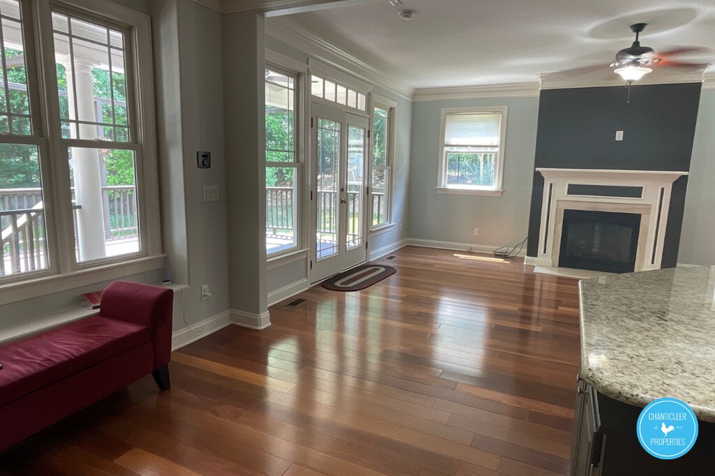 Beautiful 2 story single family home with luxurious features. Located in a Cul-de-sac, quiet neighborhood. Built in Zon music system, private backyard, reverse osmosis drinking water, home security system, large deck, two covered porches (front and back), insulated garage door, downstairs masters, downstairs hardwood. Easy access to RTP, RDU airport and downtown Raleigh.