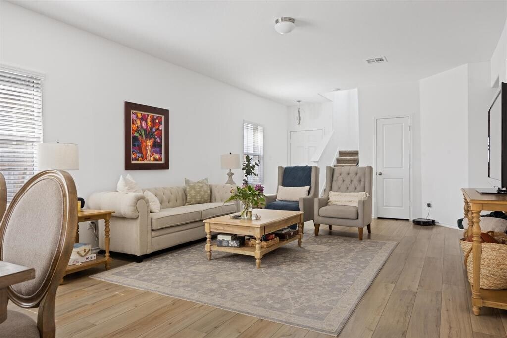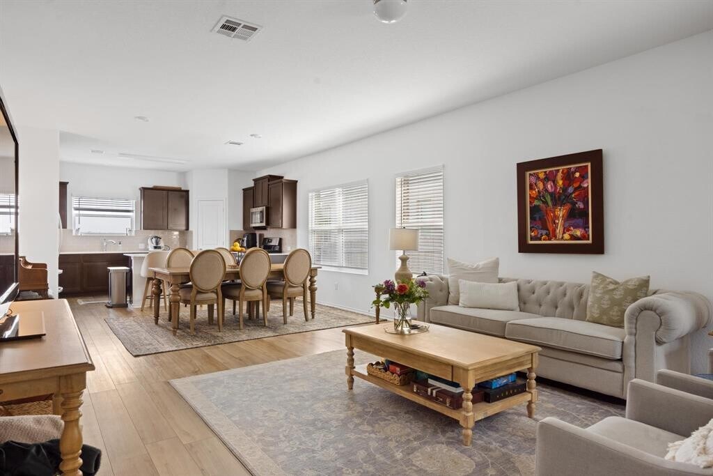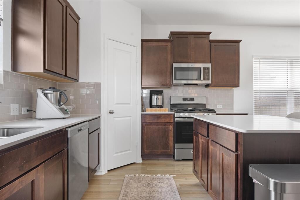 Bright open plan the Winsdale has walk in closets in every room, spacious bedrooms, large open living space, and a massive 29' x 13' game room upstairs. All luxury rigid core wood look vinyl flooring on the first level, garden tub and separate shower in master suite, 2 faux wood blinds, Silestone counters and subway tile backsplash, tall cabinetry, stainless steel gas range, microwave & dishwasher. Washer and Dryer included. Enjoy nature in the spacious back yard with some trees and gorgeous hilly view in the green space behind the home. Nestled near the front entry of the community you'll enjoy views of rolling hills all around. With LAKE ACCESS in the community(!), a gorgeous pool set up high overlooking gorgeous sunset or sunrise views of the lake, a covered pavillion for picnics, and miles of hiking trails as well as very scenic walkability through the hilly entry of community, you can live in paradise while your kids attend top rated schools! This community is nestled in impressive tall rolling hills and within 5 minutes drive of Balcones Canyonland Reserve nature trails.