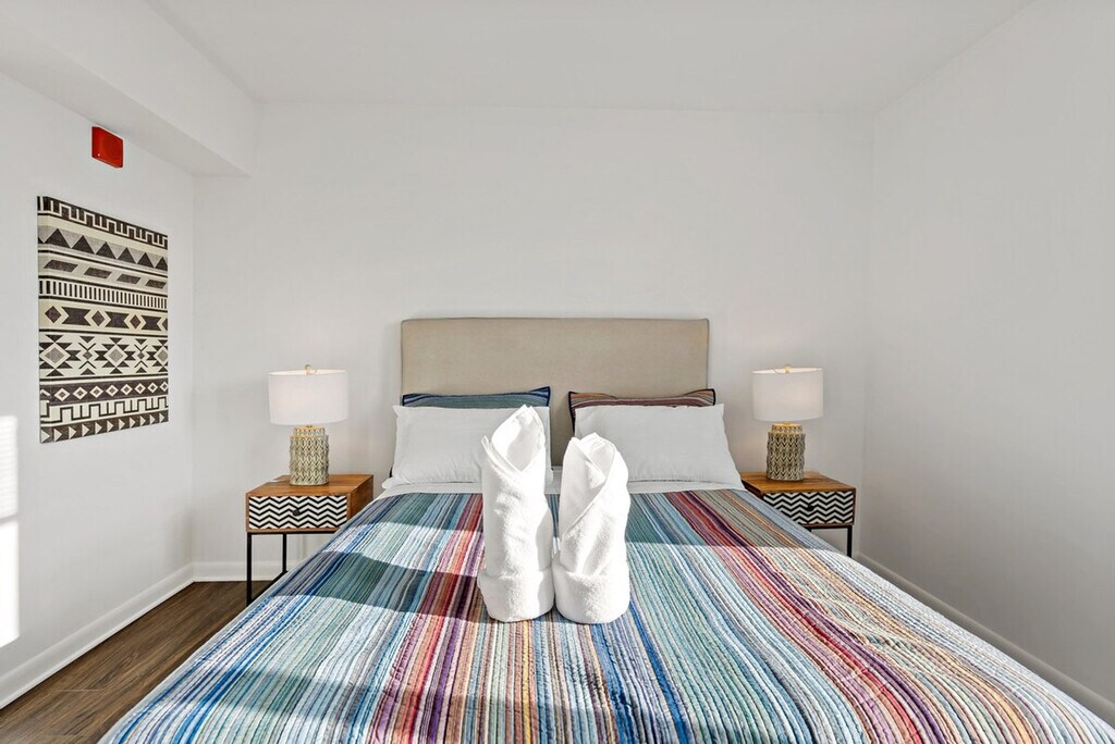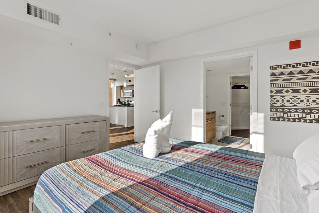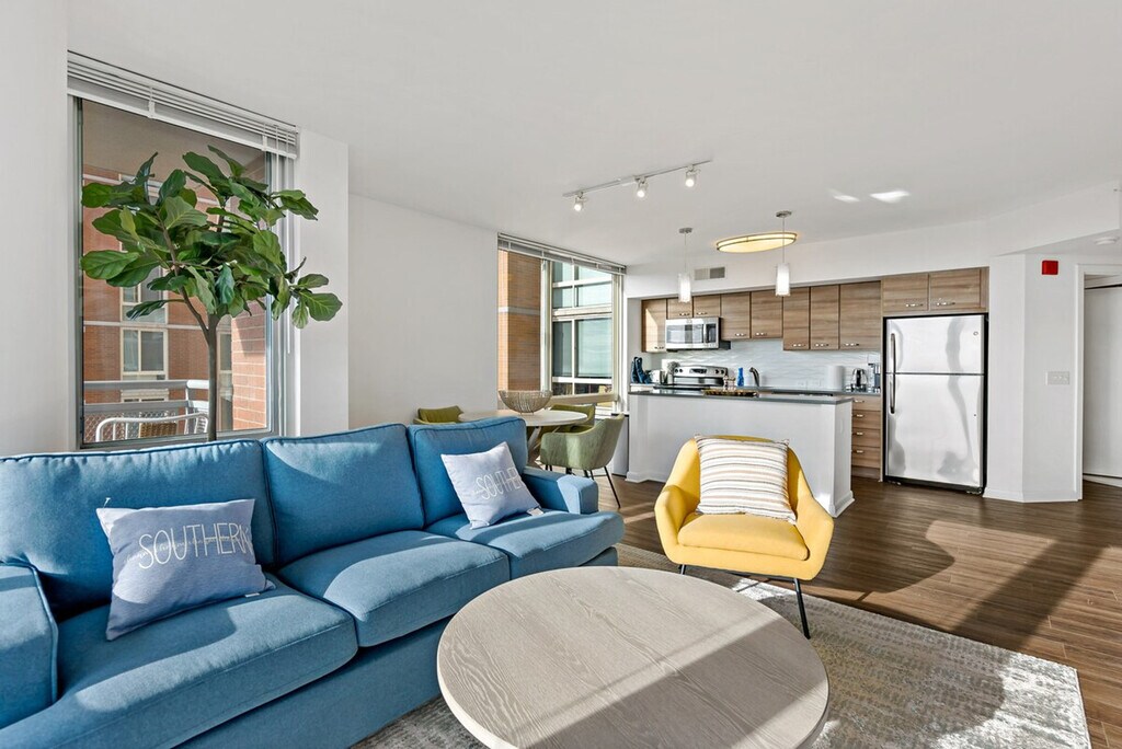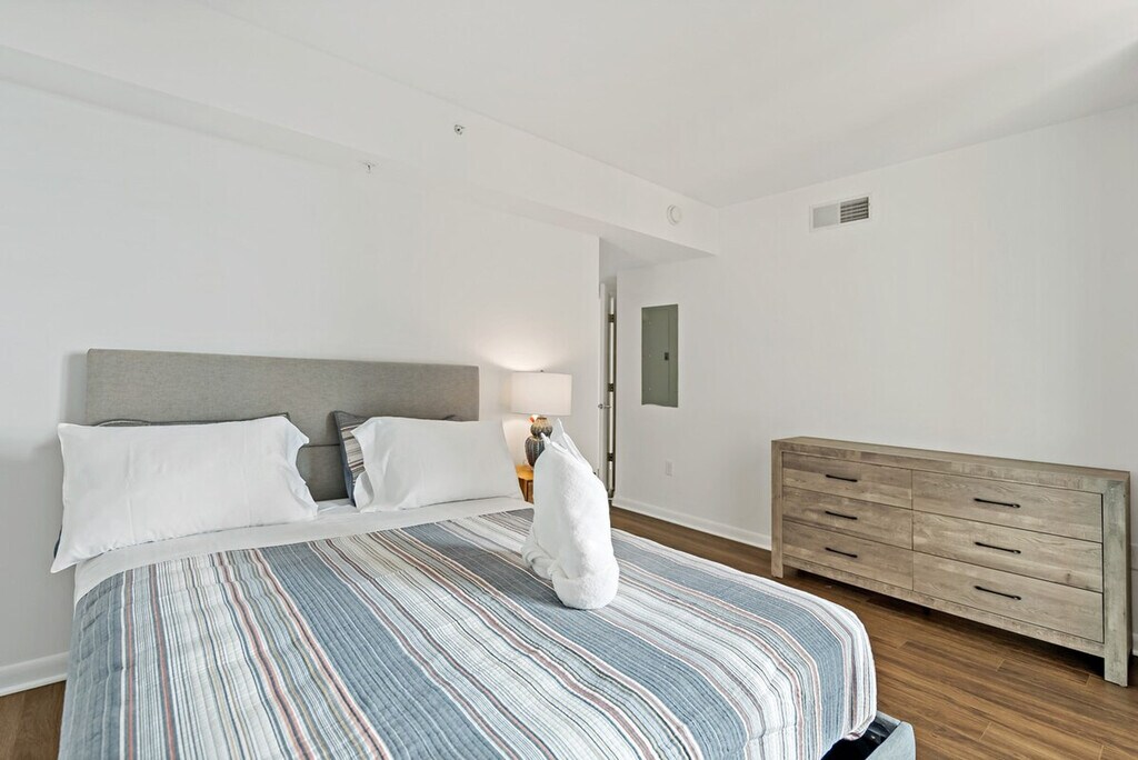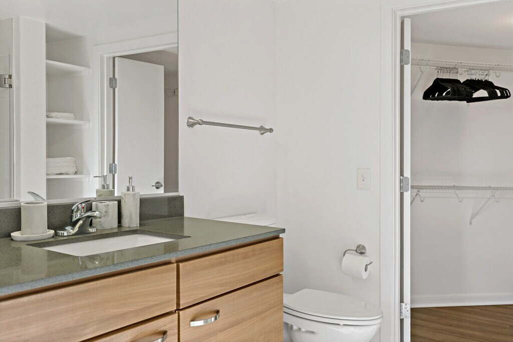 Feel at home in this bright 2-bedroom, 2-bath apartment in Tyson's, featuring sleek finishes, floor-to-ceiling windows, and city views. This apartment offers a full kitchen equipped with modern appliances, cookware, and utensils. The bedrooms feature plush queen beds with fresh linens and ample storage. The bathrooms include showers and fresh towels. The living room provides a warm and inviting space with comfortable seating and a cozy ambiance. Paid garage parking is available upon request, subject to availability, and must be arranged in advance. Public self-service parking is conveniently located across the street. Pets are allowed for an additional fee; please inquire for details. Located steps from Tyson's Corner Center’s shopping and the Silver Line Metro, this apartment is perfect for travelers seeking elegance and convenience, with easy access to D.C. in just 15 minutes. All guests are required to provide a valid government-issued ID to confirm their reservation. Building amenities include a fully equipped fitness center, an outdoor pool, communal outdoor dining areas, a remote work-friendly workspace and lounge, and a secure mail room. [SI]