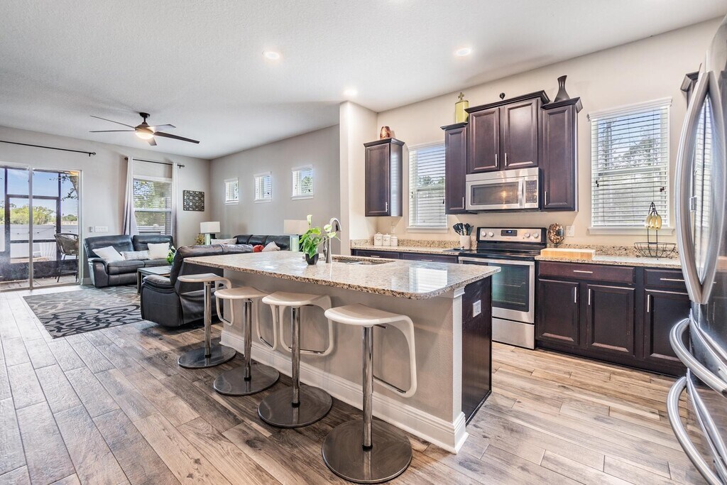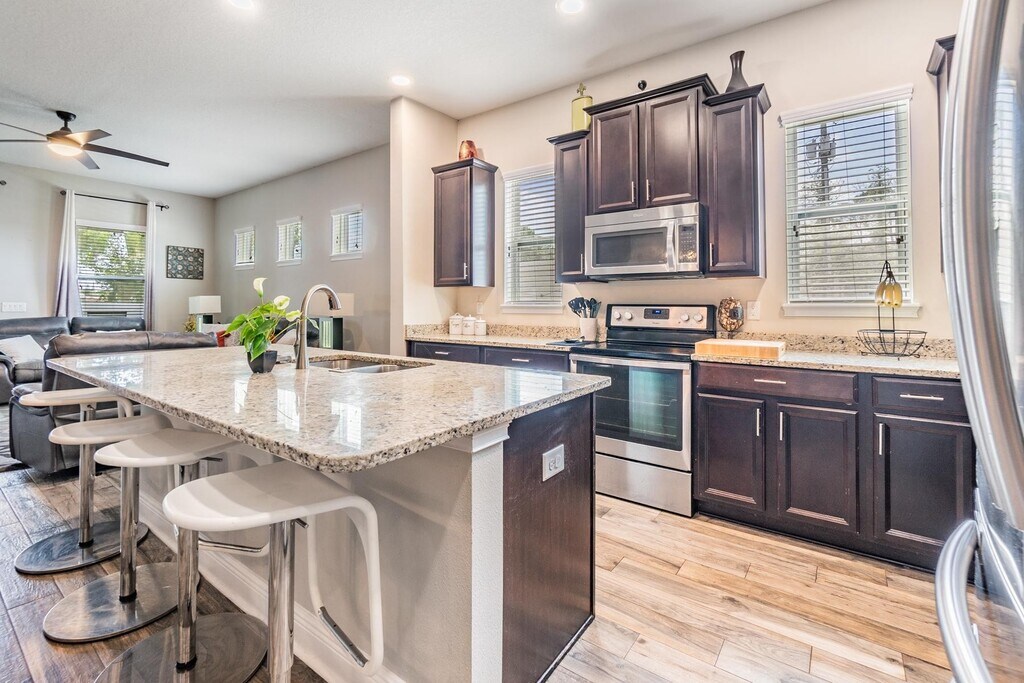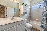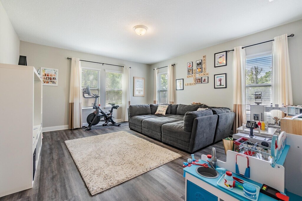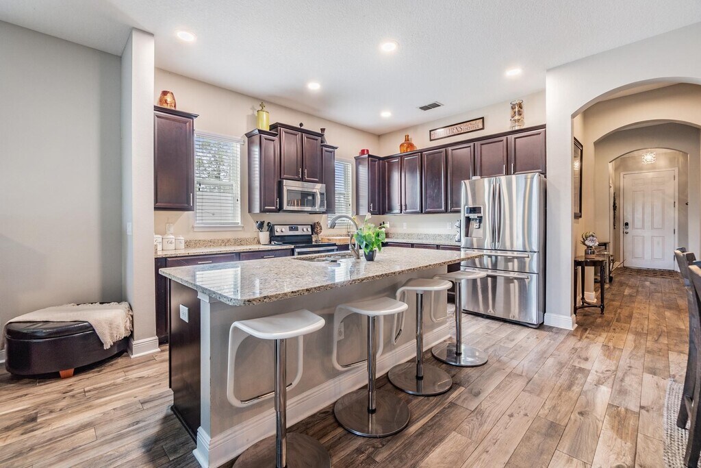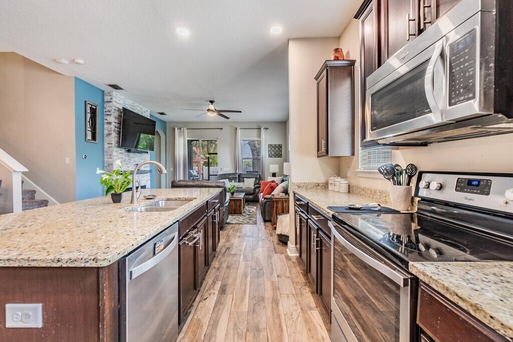 Welcome to Champions Forest, a perfect blend of luxury living and affordability in the sought-after Westchase area. The home features: 4 bedrooms, 3 full bath, spacious loft, private hot tub and more! Tremendous first floor master plan with an open concept layout perfect for entertaining. This home has been upgraded with beautiful porcelain wood tile throughout the first level, along with a built-in electric fireplace to enjoy with or without the heat. It also includes granite kitchen countertops, 42" maple cabinets, soaring 10' ceilings, 5" baseboards, and so much more. The master suite includes crown molding, an oversized shower, dual vanities and HUGE walk-in custom-built closet! Natural lights abounds through the low E dual pane vinyl windows which is coupled with the prestigous Environments for Living Program. The backyard features a screened-in lanai, recently purchase PVC vinyl fencing, paved area that includes a fire pit for those cool Florida nights! Relax in the private HOT TUB that was also purchased new in 2023. The home includes 2 1/2" white faux wood blinds throughout, stainless steal kitchen appliances (oven, microwave, dishwasher and refrigerator) and washer/dryer units with built-in folding table! Plenty of storage on custom built shelving in the garage as well as in the attic. Beautiful front yard landscaping with added front porch pavers to make it all stand out! Now let's talk about smart gadgets! The home includes two Google Nest thermostats (including 3 room sensors) so you can control the temperature straight from your phone if needed! The tamper-proof smart Nest lock system for keyless entry and new LiftMaster garage door opener (with two remotes included), where you have the flexibility to receive alerts & control your opener from anywhere with the built-in Wi-Fi and myQ technology features! Location, location, location....Easy access to TIA, beaches, shopping, schools and hospitals! LAWN INCLUDED with monthly rent $500 Refundable Pet Deposit Per Pet