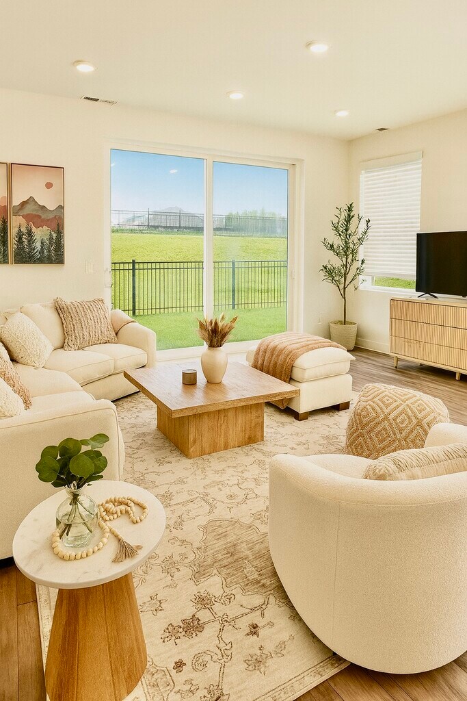 This brand new fully furnished 4-bedroom, 3-bath, 2,021 sq. ft. twin home has the feel of a stand-alone house with all the benefits of resort-style amenities. This home has views of foothills and green pastures, and a fenced yard. Adjacent to the Legacy subdivision with stunning walking trails. Beatuful golf courses are also within minutes. Step inside to a bright and spacious floor plan featuring a main-level bedroom and full bath perfect for guests, in-laws, or a private home office. The dedicated laundry room, oversized 2-car garage, and thoughtful layout add everyday convenience. Upstairs, retreat to the primary suite with a HUGE walk-in closet and spa-like bathroom, offering plenty of space to unwind. Outside, enjoy your fenced yard ideal for pets, entertaining, or simply relaxing. But the lifestyle doesn't stop there. Living in Eagle Ridge means exclusive access to: Scenic walking trails right outside your door Community pool, hot tub, and cabanas Clubhouse access for gatherings and events Dog park and on-site park for endless recreation Pickleball courts for active fun With space to grow, modern comforts, and unbeatable neighborhood amenities, this home truly offers it all. Don't miss the chance to make Eagle Ridge your new address!
