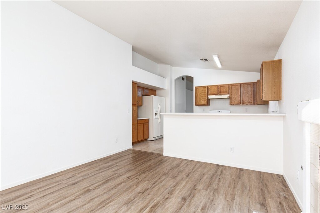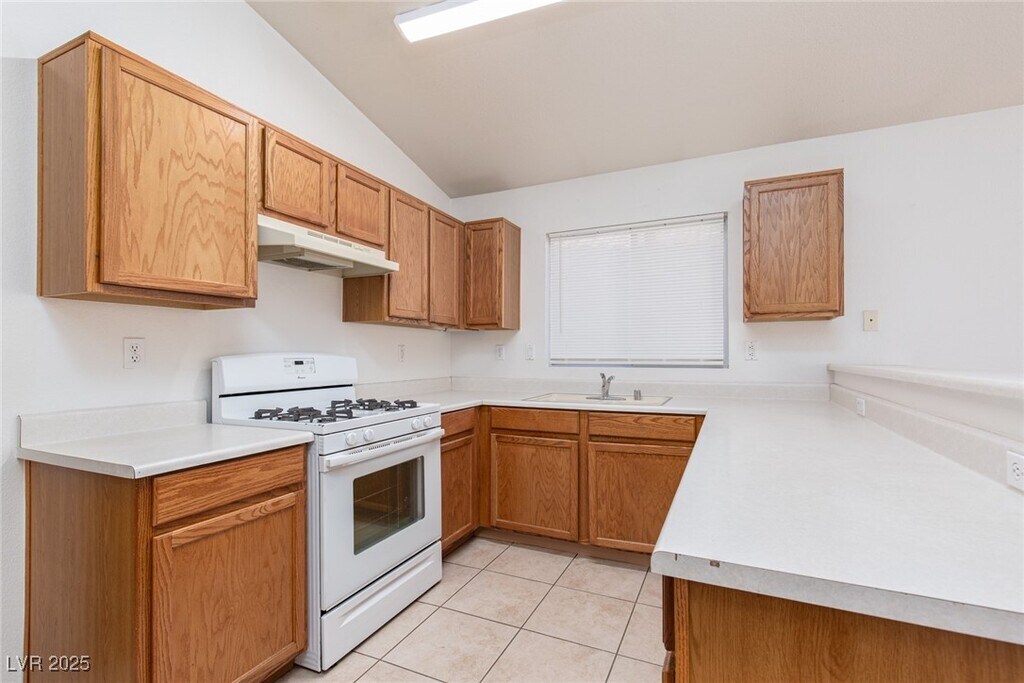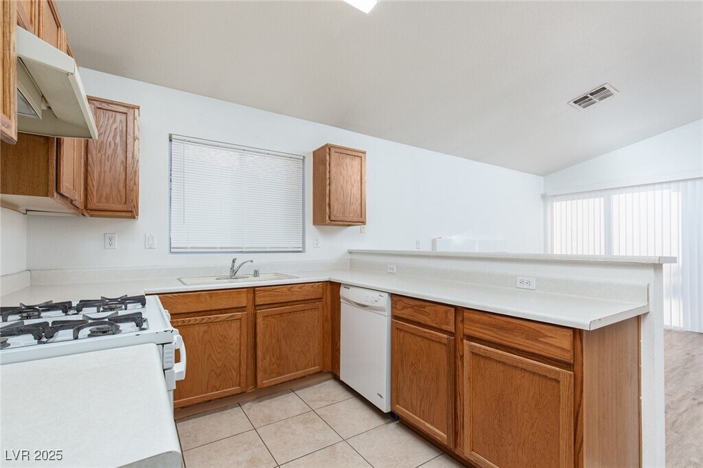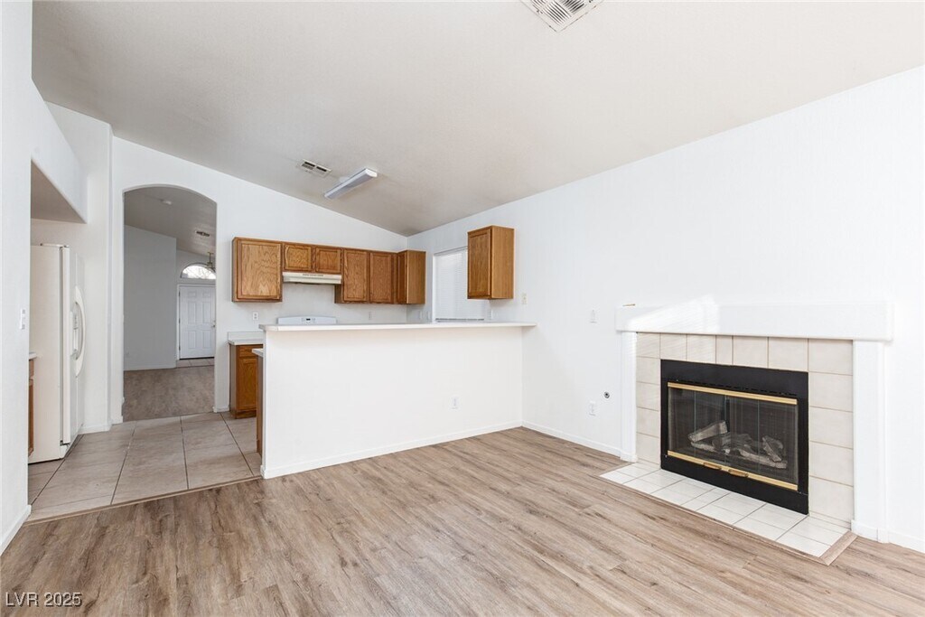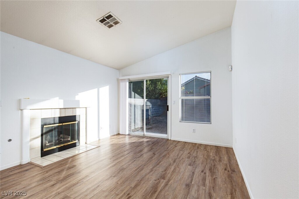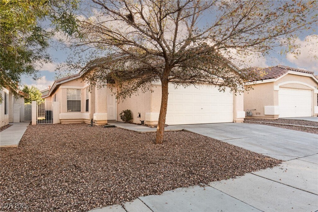 Welcome to this stunning 3-bedroom, 2-bathroom single-story home located in NW Las Vegas. This property boasts a unique desert landscaping that adds a touch of charm and character to the exterior. Inside, you'll find a cozy fireplace that serves as the perfect centerpiece for the living room, creating a warm and inviting atmosphere. The kitchen is equipped with a convenient breakfast bar, perfect for those quick morning meals or casual dining. The entire home features all tile and wood flooring, adding a touch of elegance and making cleaning a breeze. This home is a perfect blend of style, comfort, and convenience, ready to provide a wonderful living experience.