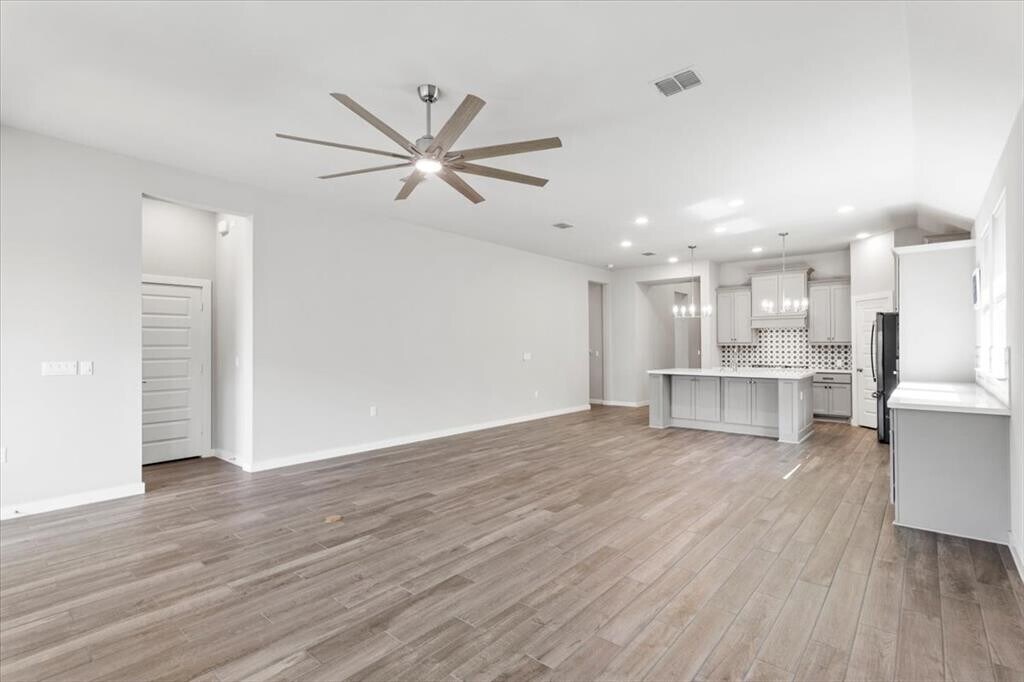This gorgeous single-story home built by Perry Homes features 4 bedrooms and 3 full baths, plus an office. Wood-look tile runs throughout the home including all the bedrooms, no carpet. The home is equipped with washer, dryer, and refrigerator, and has full blinds. The spacious kitchen features tons of cabinet space, even under the island, and a huge corner pantry. The office has french doors and high ceilings and looks out from the front of the home. The spacious primary suite looks out onto the back yard and features a large separate soaking tub, separate shower, and walk-in closet. The tenant gets to take advantage of all of Easton Park amenities from multiple parks and playscapes to miles of walking trails to The Union amenity center, which features two large pools, a full-scale gym, and more! The Treehouse foodtruck park is also within walking distance and features Cenizo coffee, Mekin Thai food, multiple taco trucks, Indian food, smoothies, and more! Just a short drive form the airport and downtown, the location cannot be beat.