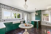 Gorgeous 1909 Craftsman which has been meticulously restored in the heart of Silver Lake. Beyond the hedges and relaxing front porch, enter through the original front door to an open floor plan with magnificent views, elegance, natural light, character built-ins, beamed ceilings and privacy. Pocket doors unveil a spacious sitting room complete with tin ceiling and speak-easy bar area. The large living room and stunning dining room overlooks the grassy yard and spectacular views. The kitchen features a fully stocked chef's dream boasting custom emerald colored cabinetry, microwave, toaster oven, dishwasher, coffee maker, country sink, European gas range and plenty of storage and prep area to create a gourmet meal. Upstairs, find three bedrooms, an office/daybed room with closet, an en-suite rose toned bedroom with queen bed and views of the historic neighborhood, and the primary bedroom featuring a luxurious king bed and sitting area with views to Century City plus an en-suite bath. The large grassy backyard with citrus trees is fully enclosed. Beautiful hardwood floors throughout and designer tile in kitchen and baths. Situated in the heart of Silverlake steps from shops, popular eateries Silverlake Ramen, All Day Baby, L&E Oyster, all of the excitement on Sunset Blvd and the Reservoir. MLS# 25574695