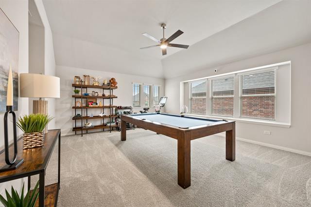 Welcome to this move-in ready full feature rental home away from the hustle and bustle of the metroplex! Plenty of room to spread out, entertain, and relax. Large backyard features privacy and expanded covered patio. Newer home means you will leave worry-free with new HVAC and roof with modern updates. Wonderful layout includes first floor master bedroom, office away from the main living areas for privacy, tons of natural light, three bedrooms and two full bathrooms up, game room, and movie room. So much space for the family! Do not miss this one