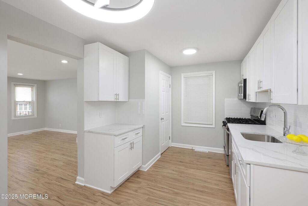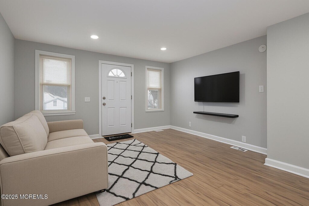 Completely renovated and move-in ready,this stunning home is located in the highly desirable Cliffwood Beach section. Featuring 3 generously sized bedrooms and 1 beautifully updated bathroom,this home offers waterproof laminate flooring and recessed lighting throughout. The spacious living and dining areas flow seamlessly into a gorgeous kitchen complete with white shaker-style cabinets,tile backsplash,quartz countertops,and stainless steel appliances. A stylish barn door leads to the modern first-floor bathroom,and the washer and dryer are conveniently located just off the kitchen. Outside,enjoy beautiful landscaping,a paver walkway,and a fully fenced yard with a large patio,perfect for relaxing or entertaining. Ideal for commutersyou're just 10 minutes to the ferry close to major highways and the train to NYC,and down the street from Cliffwood Beach Waterfront Park. Only 3 minutes from downtown Keyport,where you'll find shops,restaurants,and another scenic waterfront park.