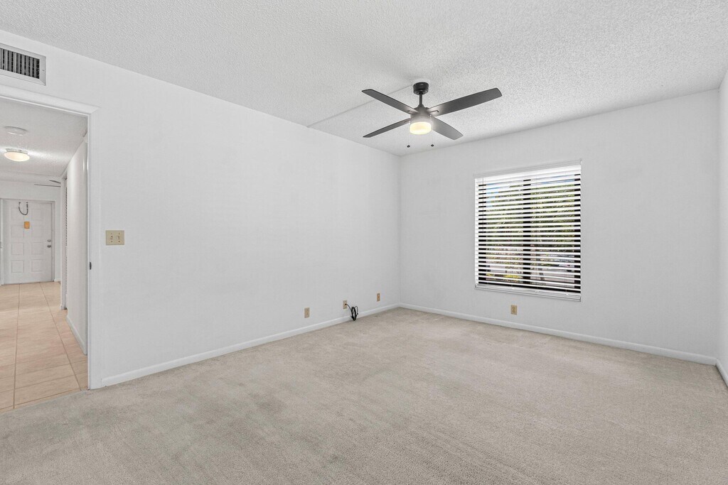 ADULT 55+ Community. Welcome to this charming 2nd floor corner unit offering 2 Bedrooms, 2 Bathrooms, bright natural light, impact windows, screened covered patio with accordion shutters. Featuring a spacious layout with tile and carpet flooring, includes remodeled kitchen with custom built cabinets with pantry, granite countertop & newer appliances. Generously sized Primary Bedroom with walk-in closet, Remodeled Master Bathroom with linen closet & walk-in shower. Monthly condo fee covers: Comcast cable, water, exterior maintenance, building insurance, 2024 roof, shared grill area & amenities, 2 vehicles permitted, pick-up trucks, motorcycles, 1 pet. Great location, close to Publix shopping center, restaurants, parks, library, beaches, airport, easy access to I-95 & Turnpike.