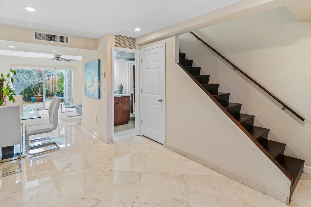 JUST REDUCED! Tastefully renovated this beautiful townhome is in a nicely maintained gated community close to shopping,transportation and vibrant Wilton Manors business district. The townhouse boasts gleaming marble floors sleek modern open kitchen half bath downstairs with washer dryer and direct access to a lush private backyard. Community features pool clubhouse with fitness center and several tennis courts. Urban living in quiet tranquil setting with one assigned parking space and guest parking. MLS ID F10532670