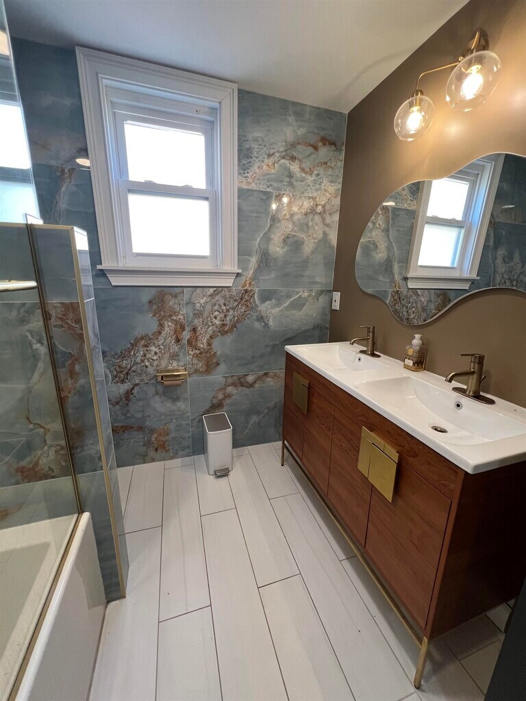 Don’t miss the opportunity to call this stunning first-floor apartment home. Completely renovated, it offers a spacious layout with a large living room, separate dining area, two bedrooms, and two beautifully designed bathrooms featuring custom tile work. The primary suite includes its own private bath for added comfort. Enjoy an open, airy feel filled with natural sunlight—perfect for both relaxing and entertaining. Conveniently located within walking distance to parks and NYC transportation, this home also includes laundry in the basement and newer appliances throughout. A rare rental that truly has it all.