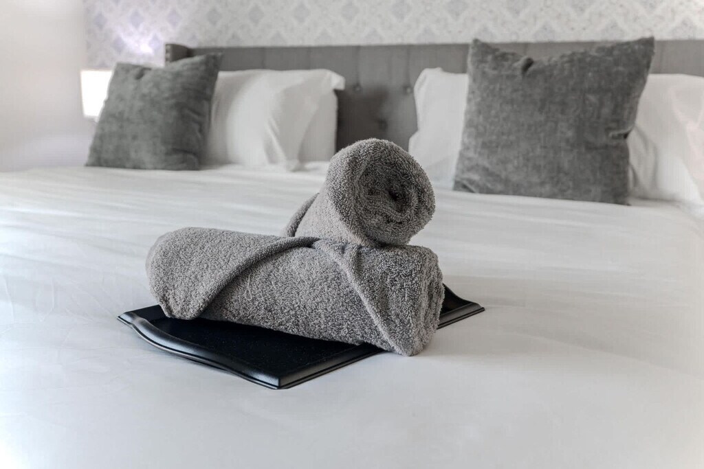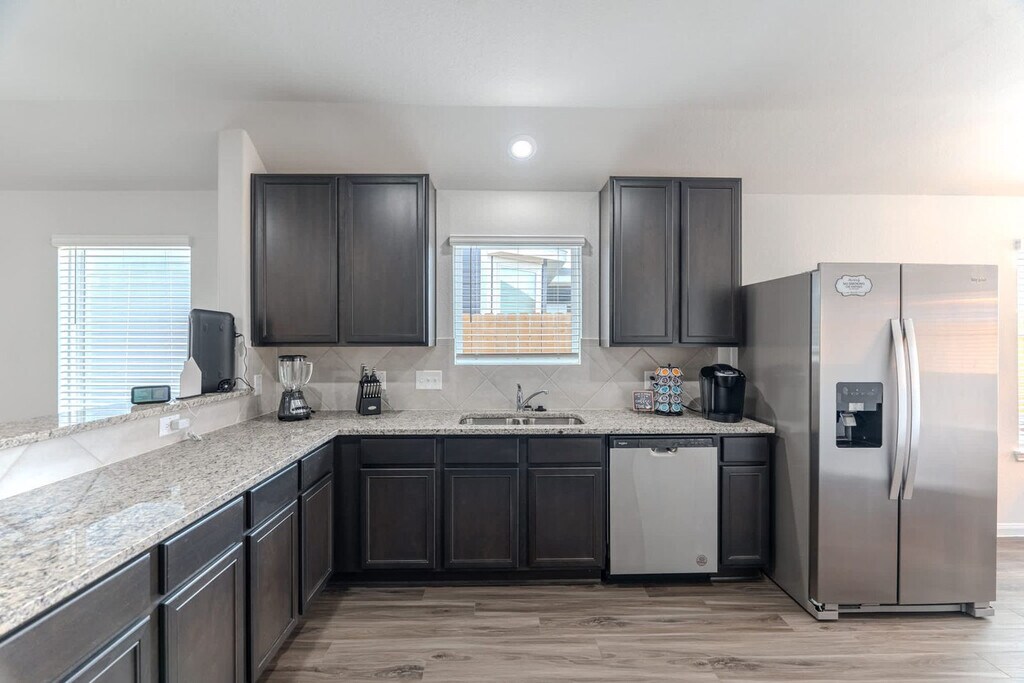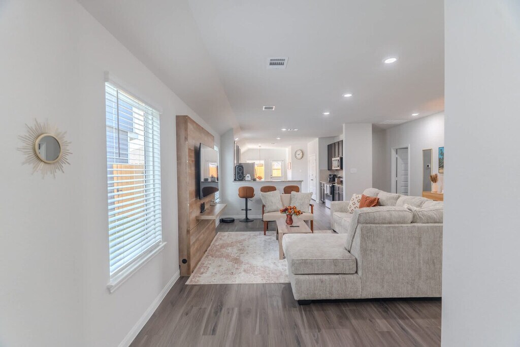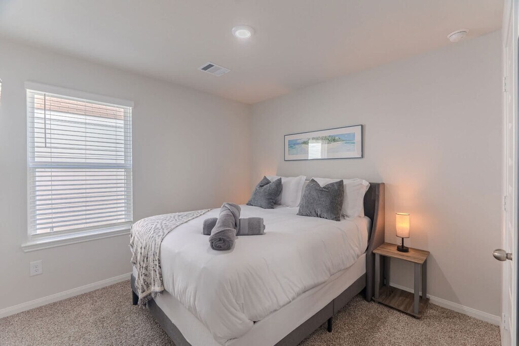 Feel at home in this peaceful and centrally located 3-bedroom house. With a queen bed, two bunk beds, a king bed, a crib, and an inflatable bed, this quaint property is perfect for families. Enjoy the Jacuzzi, AC, Wi-Fi, and more during your stay. The house features a beautiful front porch and a backyard, conveniently located 17 minutes from Bush Intercontinental Airport, 10 minutes from the highway, and 25 minutes from downtown, offering a vibrant arts scene and local dining and shops. Welcome to your home away from home! This beautiful house boasts a fully equipped kitchen and delightfully designed rooms. With thoughtful touches throughout, it's primed for a great stay whether you're here for vacation or work. The kitchen is modern and functional, featuring a kitchen island, stainless steel appliances, and cooking essentials. The dining area is furnished with a sleek table and playful yellow chairs, offering a restaurant-like environment. The charming living room, with plenty of natural light, invites you to relax and unwind. Free parking is available on the driveway. A private intimate setting can be arranged upon request, such as a romantic dinner or Valentine’s Day decor for an extra cost. House-trained pets are welcome with a surcharge to cover the cleaning fee. An additional nightly rate applies for more than five guests, with a $65/night fee for each additional guest. This Northside vacation home is conveniently located 17 minutes from Bush Intercontinental Airport, 10 minutes from the highway, and 25 minutes from downtown. Enjoy the vibrant arts scene, local dining, and shops that the area has to offer. The property does not allow parties or large unauthorized gatherings. Only registered guests are permitted. Enjoy the comfort and convenience of self-check-in, with instructions provided one day prior to your arrival. A noise alert device is installed to monitor noise levels and ensure compliance with local ordinances. Your privacy is respected as the device does not record or store sound data. The house is equipped with high-speed Wi-Fi, making it remote work-friendly. [SI]