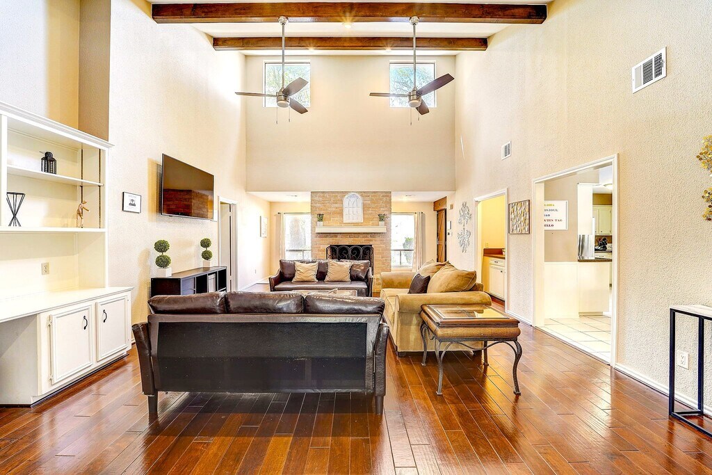Spacious 6-bedroom,3.5-bath home with approximately 3,160 sq. ft. of living space available for long-term lease in a quiet Houston neighborhood. This beautifully maintained property offers open living areas,a fully equipped kitchen,and a dedicated game room for entertainment and relaxation. The layout includes five bedrooms and 2.5 baths on the main level,plus a large upstairs suite with an attached full bath—perfect for guests or multi-generational living. Enjoy outdoor living with a private fenced backyard,sparkling pool,and large covered patio featuring dining,grill,and lounge areas. Conveniently located near major highways and just a short drive from downtown Houston,this home offers both tranquility and accessibility. Professionally managed with flexible lease terms available. MLS# 24163538