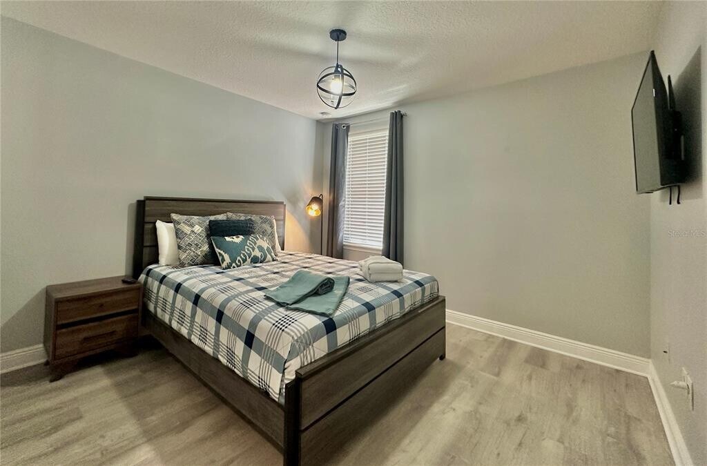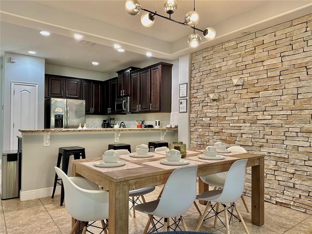 Spacious and fully furnished 3-bedroom,2.5-bath townhome in the gated community of Fountains at ChampionsGate. Offering 1,632 square feet,this two-story home features all bedrooms upstairs along with a full-size washer and dryer. The open-concept main floor showcases waterproof vinyl flooring throughout — NO carpet — a modern kitchen with granite countertops,stainless steel appliances,dark espresso cabinetry,and ample storage. The living area is highlighted by a stunning stacked-stone accent wall,creating a warm and inviting atmosphere. Enjoy a private patio with additional exterior storage closet. The one-car garage Plus driveway adds extra convenience. Community amenities include a clubhouse with fitness center and a large resort-style pool. HOA includes internet,cable TV,and grounds maintenance. Tenant pays water and electricity. Sub-Leased is Not Allowed. Prime location in the heart of ChampionsGate,just minutes from I-4,Highway 27,and SR-429,offering easy access to Orlando,Tampa,and Central Florida’s major attractions. Close to Walt Disney World,golf courses,shopping,dining,and everyday conveniences. An ideal location with excellent connectivity and accessibility. MLS# O6385922