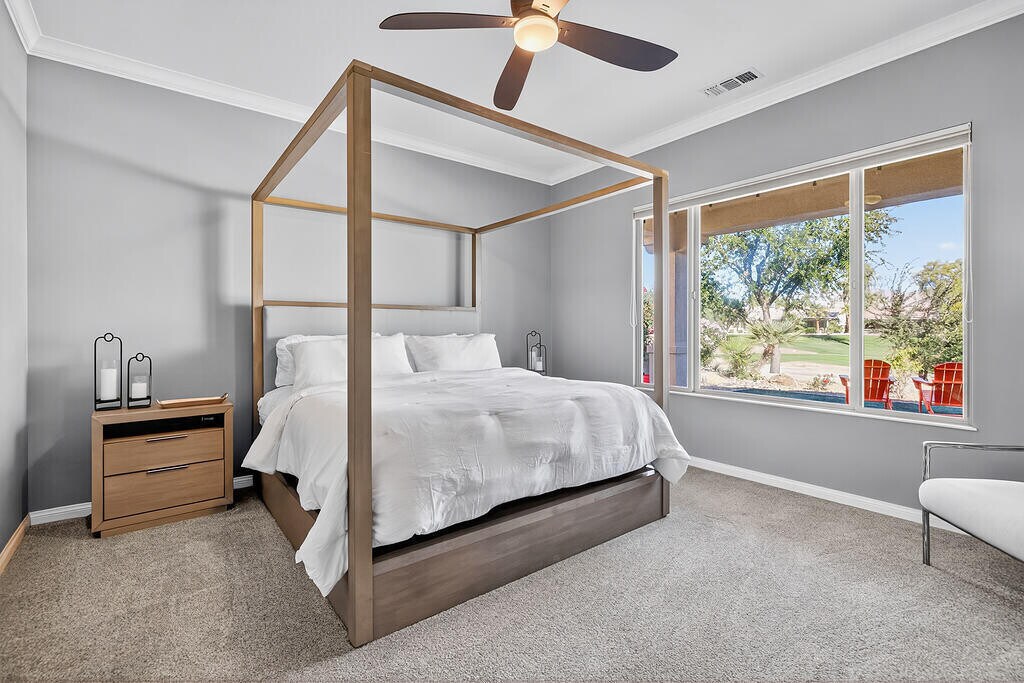 Embrace luxury living in this exquisite 55+ community of Sun City Shadow Hills,nestled on the #2 Fairway of the Championship GOLF COURSE with breathtaking MOUNTAIN VIEWS. This home is ready and available for a LONG-TERM LEASE. This turn-key,FULLY FURNISHED home features two spacious ENSUITE BATHROOMS,a sleek HOME OFFICE with a built-in desk,and a welcoming LEADED GLASS entry door. Enjoy cooking in your gourmet kitchen with elegant QUARTZ countertops and abundant natural light from MILGARD picture windows. The open-concept design is adorned with CROWN MOLDING,tile and luxury vinyl plank flooring,providing a sophisticated yet comfortable ambiance. Step outside to your private oasis with artificial turf,perfect for low-maintenance outdoor enjoyment. The 2-car garage,complete with AC,ensures your comfort year-round. As a resident,indulge in a wealth of amenities: tennis and pickleball courts,sparkling pools,a state-of-the-art fitness center,24-hour guard gated security,and a vibrant community with numerous clubs to join. Don't miss the chance to call this beautiful property your new home! Contact us today for your private viewing! Available for a long-term lease. GARDENING & Wi-Fi included!