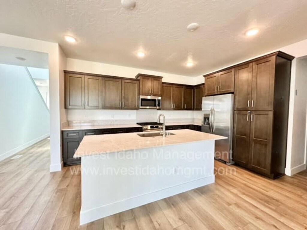 Beautiful BRAND NEW in 2024 Home by Lennar in The Terraces at Eagle Ridge. This elegant 4 bedroom, 3 bath two-story attached townhome (does not have any shared walls with neighbors) has an open concept layout on the primary floor includes an inviting kitchen, that features stainless steel appliances, quartz countertops, soft-close cabinets and drawers, with a gourmet island. Dining room and spacious Great Room are perfect for family gatherings, along with the easily assessable outdoor covered patio. A secondary bedroom can be found on the first floor, ideal for a guest suite or home office, with a nearby full bathroom. Enjoy summer BBQ's out on the covered back patio. Sliding door to back patio has custom shades. Upstairs, there are 3 additional bedrooms, which include the lush master suite, featuring a roomy bedroom, en-suite bathroom and walk-in closet. Attached 2 car garage with epoxy flooring, full bathrooms and laundry room showcases tile flooring, quartz countertops with under-mounted sinks, you’ll find raised baseboards throughout the home. Professionally landscaped front & back yard with irrigation system, including full fencing & side gate. A phenomenal location in a lush setting. Stroll along winding walking paths through miles of trees. An amazing home with lots to offer. You’ll love the landscaping and the outgoing community. There are so many wonderful amenities pickleball courts, and dog park. Community swimming pool and club house This rental is a townhome but the units do NOT share a common wall. Each side has their own wall with space in between so you never have to hear your neighbors. Application fee: $45.00 Monthly Rent: $2,495.00 Security deposit: $2,000.00 Tenant responsible for all utilities HOA handles yard care in front. Tenant responsible for backyard Pet friendly with additional fee. Lease length negotiable. Please call our office at with any questions you may have or visit our website at Schools: Eagle Elementary Star Middle Eagle High School Location Information: Subdivision Name: Eagle Ridge Apply via our website: We process applications in the order they are received to be fair to everyone (all documents we ask for must be included or we move on to the next application). Your application will be run quickly if you provide everything required. If we do not process your application we will refund your application fee. Renters insurance is required. Even though we have property insurance, it will not cover your personal belongings. Without renters insurance, you would have to pay to replace your things if they were damaged or stolen in a burglary or damaged in a fire. One time leasing admin fee: $200 Renter to Verify all information Invest Idaho Management adheres to and follows all Fair Housing Guidelines & Rules. *Once a deposit is paid it becomes non-refundable if the lease agreement is not signed
