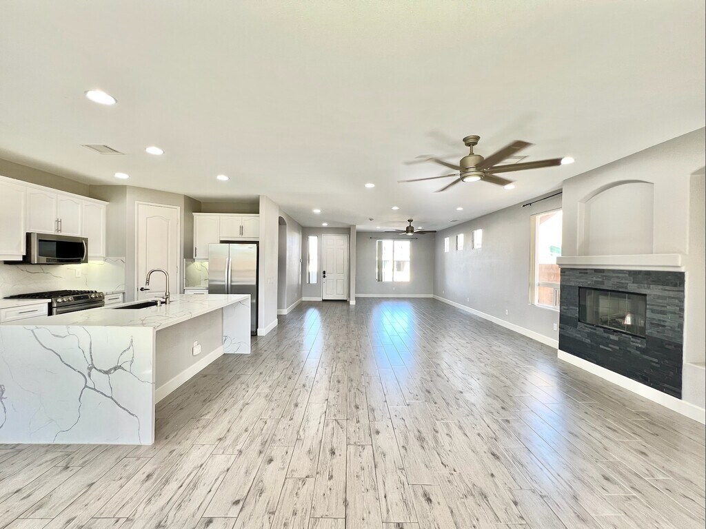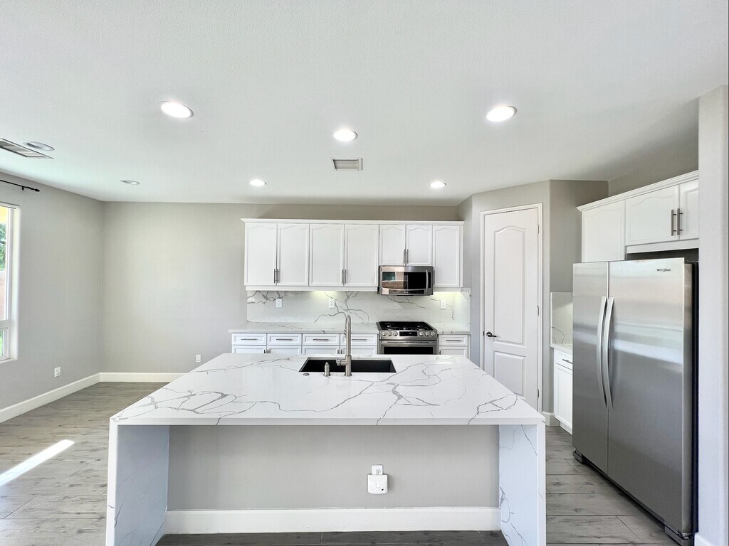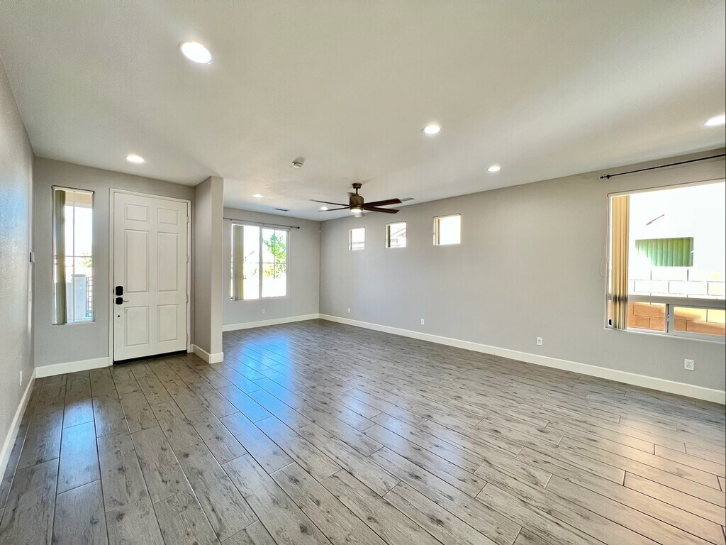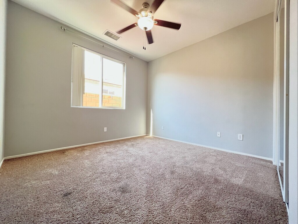 Spacious four bedroom, two bathroom single family home in the gated community of Las Colinas. This home features wood look tile flooring throughout, ceiling fans, a kitchen with a large island with waterfall quartz counters, walk-in pantry, and stainless steel appliances. Main bedroom features a dual basin vanity and walk-in closet. Attached three car garage and laundry room with additional storage cabinets. Sunny backyard with covered patio and lush lawn. Small pet OK subject to owner's approval, pet rent, and deposit. Offered at $2975 per month on an annual lease. At Hayes Realty, we believe in straightforward rental pricing. We do not charge account setup fees, monthly administration fees, or appliance rental cost fees. For more information or to request an application, please contact the property manager at . Minimum Qualifications: 650 FICO score (Not applicable for potential tenants with rent subsidies under SB 267) Verifiable income of at least 3 times tenants portion of the monthly rent. No bankruptcies or evictions Positive rental history