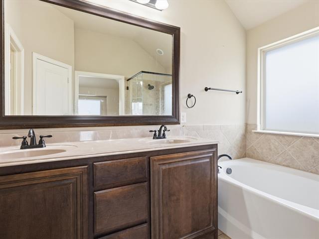 Located in the heart of Aubrey, this beautifully maintained home offers the perfect blend of comfort, functionality, and style. Featuring a spacious open-concept layout and high ceilings throughout, the home is designed for both everyday living and effortless entertaining. The kitchen serves as the centerpiece with granite countertops, stainless steel Whirlpool appliances, ample cabinetry, generous counter space, and a seamless flow into the living and dining areas. The split floorplan provides added privacy, with the primary suite serving as a true retreat featuring a well-appointed ensuite bath with a relaxing garden tub, separate from a jacuzzi style setup, and a walk-in closet. Secondary bedrooms are generously sized and offer flexibility for guests, a home office, or additional living space. The dedicated office features French doors, creating a functional and private workspace. Step outside to enjoy both a large front sitting porch and an expansive back patio, offering plenty of space to relax, entertain, or create your ideal outdoor setup. The sizable backyard provides endless potential for gatherings or quiet evenings at home. Conveniently located near Lake Lewisville, parks, and major thoroughfares, this home combines small-town charm with easy access to nearby dining, shopping, and recreation.