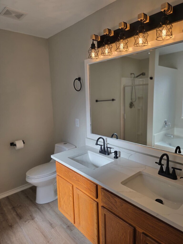 This beautifully renovated home sits at the end of a quiet cul-de-sac in a friendly, safe neighborhood. With luxury updates throughout and seamless indoor-outdoor living, it offers the perfect blend of comfort and convenience. Inside, discover a chef-inspired kitchen featuring granite countertops and new Samsung Smart appliances, including a Family Hub refrigerator and dishwasher. Fresh paint, new luxury vinyl plank flooring, and plush carpeting create a bright, modern feel throughout. The main-level master suite includes a vaulted ceiling and walk-in closet, with a spa-like bath featuring a garden tub, separate shower, and quartz vanity. Upstairs, three spacious bedrooms and a large entertainment room provide ample space for family or guests. Outside, enjoy a private, shaded retreat. Mature oak trees frame both the front and backyard, while the oversized limestone patio overlooks a serene nature park—giving the feel of country living with city convenience. Full lawn, garden, and HVAC maintenance are included, plus light bulb replacements and fast response to service requests. Location is key: Minutes from Randolph AFB, Ft. Sam Houston, and BAMC. Retama Park, The Forum, dining, shopping, and entertainment are all nearby, with easy access to Loop 1604 and I-35. Rental Requirements: Minimum credit score: 680 Clean background, work, and rental history Security deposit: $2500 Don’t miss this move-in-ready home—schedule your tour today.