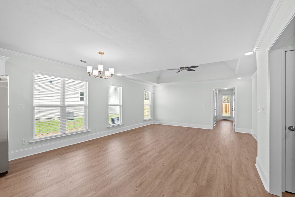 Available for immediate occupancy! New construction, end unit 2 bedroom, 2 bath townhome in Clearwater Preserve subdivision. Covered front stoop opens to foyer with LVP flooring throughout living space and hallways. Foyer leads to open-concept living space including kitchen, dining and living room. Living room has trey ceiling and ceiling fan; adjacent dining area with decorative lighting separates the living room and kitchen area. Kitchen with granite counters, stainless appliances, tile backsplash and pantry. Hallway off dining area leads to mud area with shoe bench and coat pegs, security system, linen closet and laundry room with cupboard and hanging shelf. Door separates the living kitchen space from the hallway leading to the bedrooms/bathrooms and backyard. Primary bedroom has trey ceiling and fan. En suite bath has double sink vanity with stone counter, large walk in shower, linen closet and large walk-in closet with shoe rack. 2nd bedroom with double door closet. Hall bath with single sink vanity and tub/shower combo. Covered rear porch with extended patio and privacy fenced backyard. #goodtoask