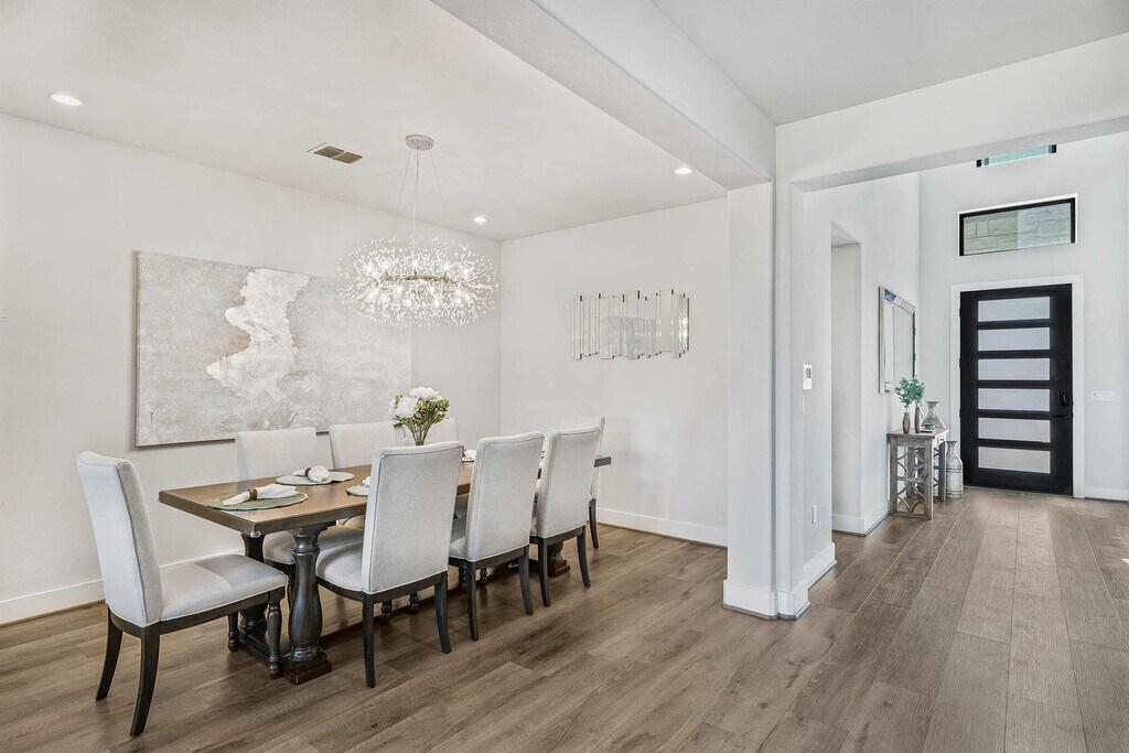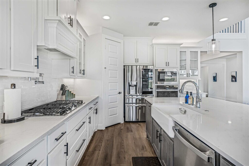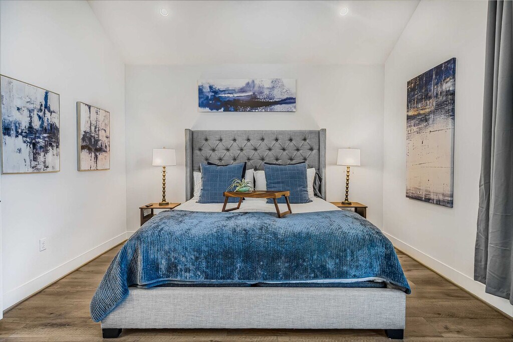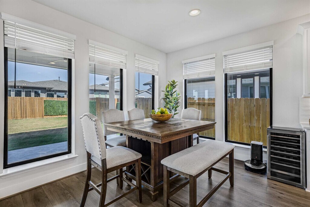 Welcome to this stunning Southeast Austin home, beautifully furnished and designed for comfort. Feel at home in this spacious property with 4 bedrooms, 3 bathrooms, and a dedicated office. The bright, open floor plan is filled with natural light, creating a warm and inviting atmosphere. The large, fully stocked kitchen features an island, and the comfortable living area includes a 70" flat screen TV with cable and streaming. Enjoy the cozy couch, fast internet, and complimentary Wi-Fi. There is also a large two-car garage with 2 EV charging outlets (240V each). This is a dog-friendly property with a fenced-in yard, and a pet fee applies. Located just 10 minutes from Austin Airport and the Circuit of the Americas, this home offers convenient access to both travel and entertainment. Explore the great outdoors with McKinney Falls and Onion Creek State Parks only 5 minutes away. Downtown music venues, the Convention Center, Ladybird Lake, Zilker Park, Rainey St., and 6th St. are all within a 20-minute drive. Easton Park in Southeast Austin is a master-planned community known for its emphasis on outdoor living, with over 350 acres dedicated to parks, green spaces, and trails. Quiet hours are strictly enforced from 10 PM to 10 AM. No parties or large gatherings are allowed. Only registered guests are allowed on the property unless approved in advance. This property is in a family-friendly neighborhood with long-term residents, so please be respectful at all times. No check-outs are allowed on Saturdays. Adult dogs only are allowed, and they must be 18 months or older and weigh less than 50 lbs. Dogs are not allowed on furniture, and any signs of paws or fur on furniture may result in a cleaning fee being charged. Please clean up after your dog, and pets must be on a leash when outside the property. No cats are allowed. A $150 cleaning fee applies if these rules are not followed. Smoking or vaping inside the home is not permitted, and if signs of smoking are found indoors, a $200 cleaning fee will be applied. If the BBQ is not cleaned after use, a $75 cleaning fee applies. Includes a private office. Registration Number: 3 [SI]