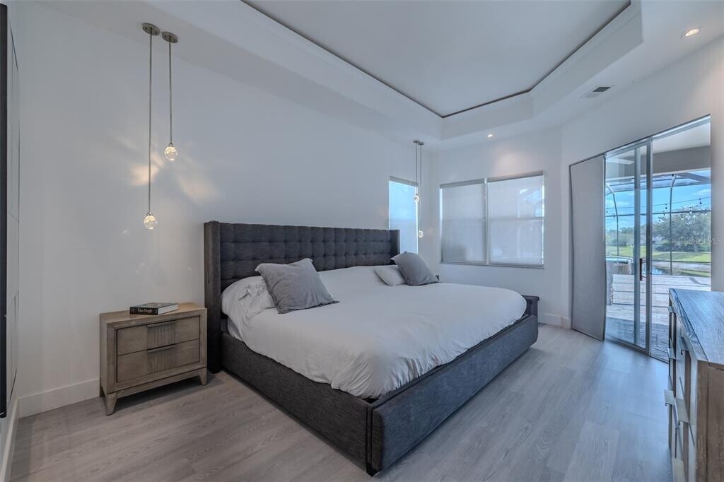 Luxury is now for RENT! Nestled in the prestigious gated community of GRAND HAMPTON. This stunning 4-bedroom,3-bathroom home offers a perfect blend of luxury and tranquility. Spanning 2,381 sq ft,this residence welcomes you with its impressive split layout and large,inviting rooms. Step inside and feel the open flow of the wide plank high-grade laminate flooring that graces the main living areas,enhancing the home's warmth and elegance. Sunlight pours through tall windows,accentuated by plantation shutters,creating a serene ambiance throughout. Imagine enjoying coffee every morning on your private,screen-enclosed patio,surrounded by lush greenery. Here,discover an outdoor oasis: a natural gas grill for your culinary adventures,and a soothing hot tub to unwind. Let the gentle sound of the water feature and the warmth of the natural gas fire pit transport you to an evening of relaxation under the pergola,all while overlooking a peaceful pond that mirrors the tranquility of your surroundings. For the tech-savvy,basic internet and cable are included,ensuring seamless connectivity. The quiet street hums with peaceful evenings,making this an idyllic retreat for those seeking both solitude and a sense of community. This property is not just a house; it's a lifestyle. Imagine hosting family gatherings,creating memories in a home that exudes confidence and warmth. Don't miss this opportunity! Discover the perfect blend of luxury,comfort,and inspiration at 8117 Hampton Glen Dr. Schedule your private viewing today and step into a life of unparalleled elegance. MLS# TB8446018
