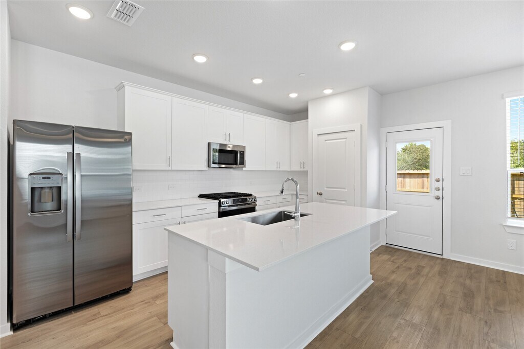 Welcome to 8119 Danson Lane! A beautifully crafted,never-lived-in townhome located in the heart of Pearland,TX. This modern new construction offers 4 spacious bedrooms,2 and a half baths,and an open-concept design ideal for comfortable living and entertaining. The gourmet kitchen features quartz countertops,stainless steel appliances,gas stove,oversized island,and ample cabinetry for stylish storage. Unwind in your private fenced backyard,with a scenic walking trail just steps away. Elegant wood floors throughout bring warmth,no carpet. Pets are welcome. All appliances included. Located in a secure,gated community experience elevated living in Pearland! Schedule your private showing today. MLS# 8229430