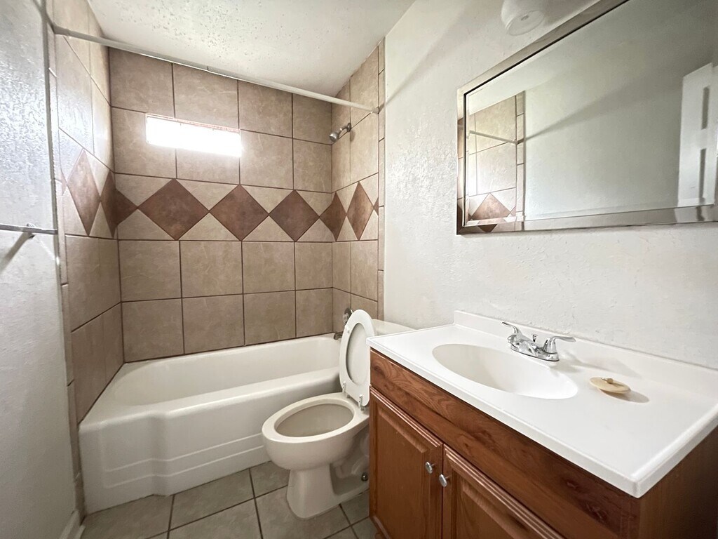 View 360 virtual tour: Explore this inviting 3-bedroom, 1-bathroom duplex offering over 1,000 square feet of comfortable living space. The living room features durable laminate flooring, while the kitchen, dining area, and bathroom include easy-to-maintain tile flooring. The bathroom is equipped with a tub and shower combination surrounded by attractive tile for a clean and modern finish. The kitchen comes fully equipped with a stove, oven, refrigerator, double sink, dishwasher, and a stylish tile backsplash. This practical layout provides everything you need for everyday convenience and functionality. Contact us or stop by our Killeen office to learn more!