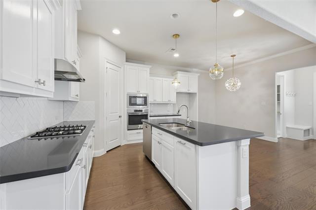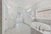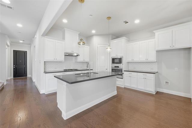 A beautifully maintained home in the highly desirable Village at Twin Creeks community of Allen. This thoughtfully updated property combines modern functionality with timeless style, offering both comfort and convenience in one of Allen’s premier neighborhoods. Inside, you’ll find an inviting open-concept floor plan featuring spacious living areas with abundant natural light, neutral tones, and elegant finishes. The large family room flows seamlessly into the kitchen and dining areas, making it perfect for entertaining or everyday living. The kitchen offers ample cabinet space, Quartz countertops, stainless steel appliances, a gas cooktop, and a breakfast bar ideal for casual dining. The home includes a dedicated office with new flooring, fresh paint, and a custom built-in desk and cabinetry added in 2025 — a perfect setup for remote work or study. The primary suite provides a relaxing retreat with a spacious layout, walk-in closet, and a private ensuite bath featuring dual sinks, a soaking tub, and a separate shower. A second bedroom located on the first level offers a full ensuite bathroom, making it ideal for guests, in-laws, or multi-generational living. Secondary bedrooms upstairs are generously sized and well-appointed for family or guests. Recent upgrades showcase true pride of ownership, including a stamped concrete patio that extends the outdoor living space, ideal for gatherings and relaxation. A whole-home water filtration and softening system enhances water quality throughout the house, and a 240V NEMA 14-50 outlet was installed for convenient electric vehicle charging. Located in the sought-after Village at Twin Creeks, residents enjoy access to beautiful community amenities, parks, walking trails, and top-rated Allen ISD schools. With easy access to shopping, dining, and major highways, this home offers the perfect blend of location, quality, and lifestyle. Move-in ready and meticulously cared for — the perfect place to call home.